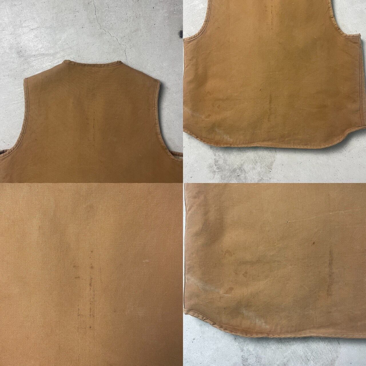 70年代 USA製 Carhartt カーハート ダック地 ノーカラー ワークベスト ボアベスト プリントタグ メンズ2XLT 古着 70s ヴィンテージ VINTAGE キャメルブラウン 茶色【ワークジャケット】【ベスト】/ブラウン【SA2501-30】
