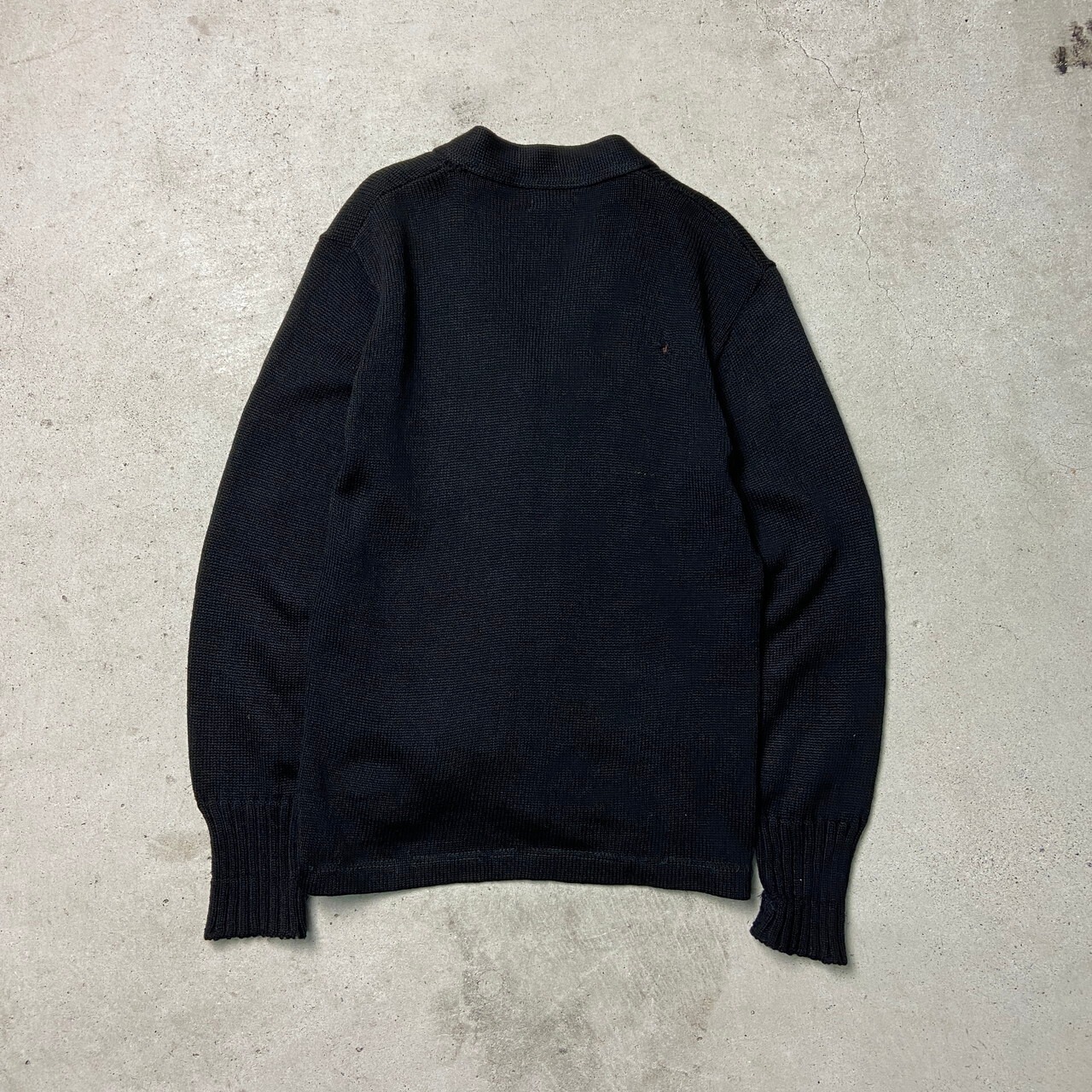 70年代 UNKNOWN ウール レタードカーディガン ポケット付き メンズ合わせ メンズS相当 古着 70s 無地 ヴィンテージ VINTAGE 黒色【ニットセーター】/ブラック【SS26-30】