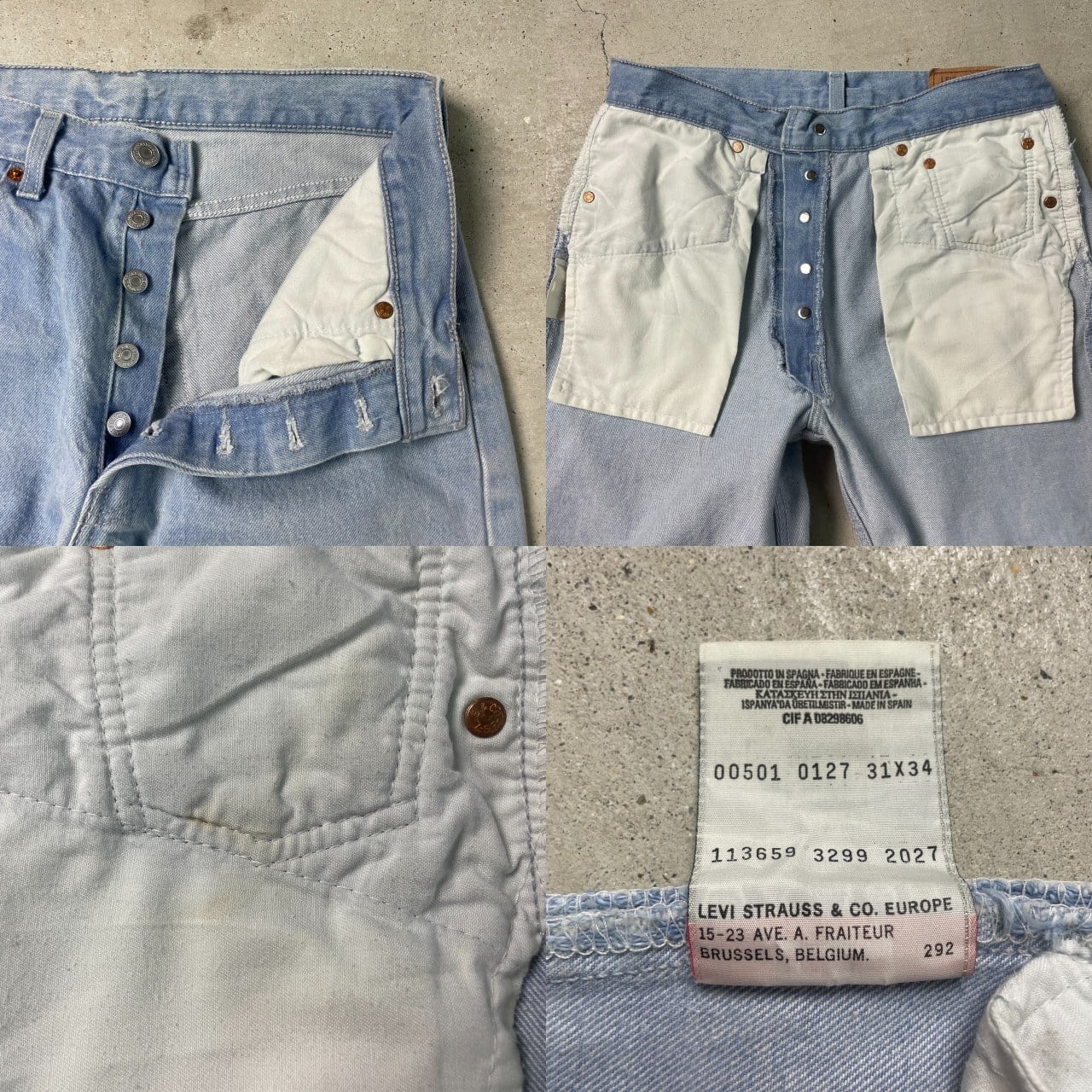90年代 スペイン製 Levi's ユーロリーバイス 501 ストレート デニムパンツ カラーデニム メンズW31 古着 ジーンズ 水色【デニムパンツ】/ブルー