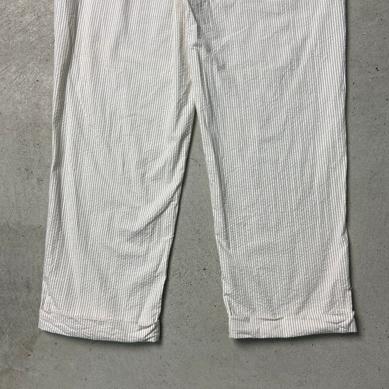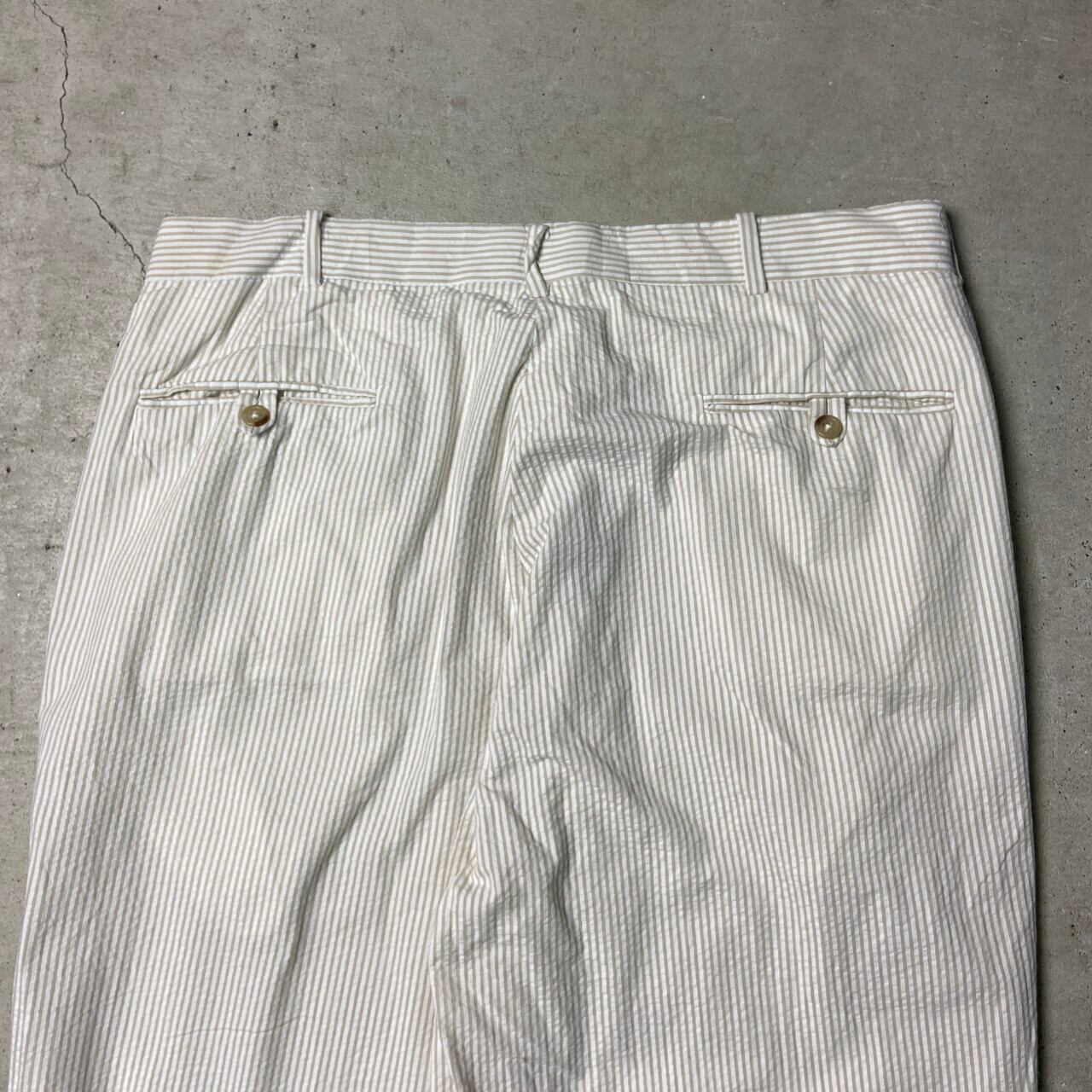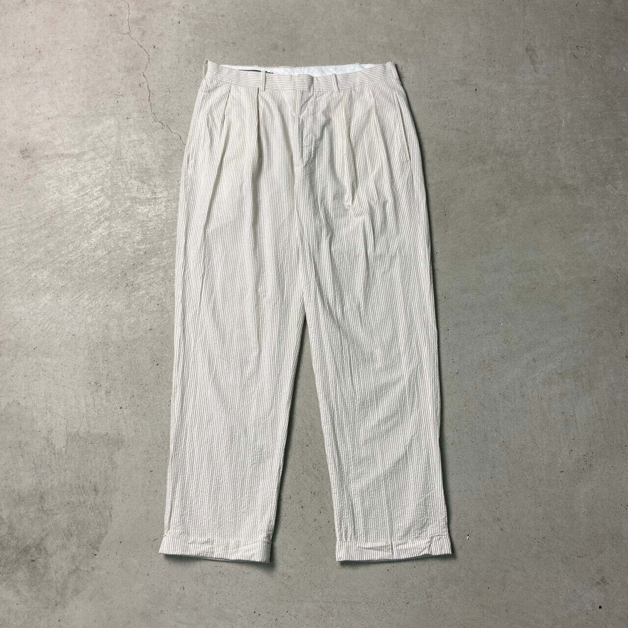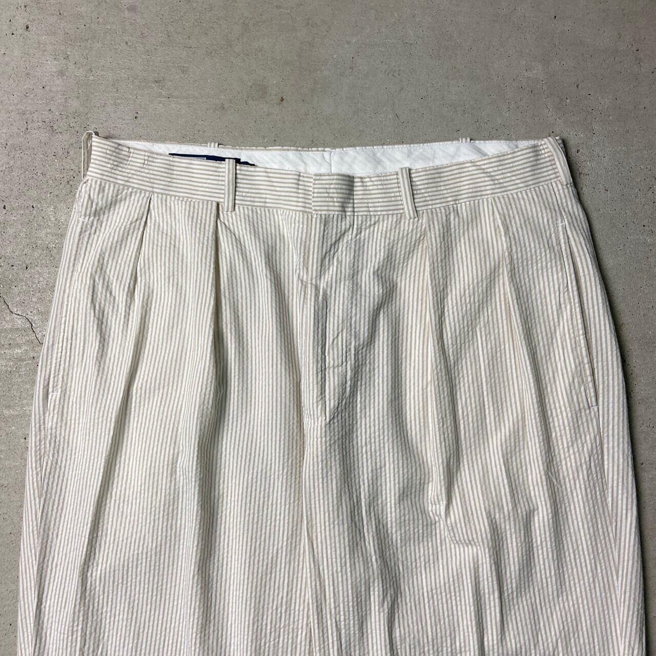 ■90年代 Polo by Ralph Lauren ポロバイラルフローレン シアサッカーパンツ 2タック ピンストライプ ポロチノ メンズW35 古着 90s ヴィンテージ VINTAGE ワイドチノパンツ ホワイト ベージュ ライトブラウン 白 茶色【チノパンツ,コットンパンツ】/ホワイト