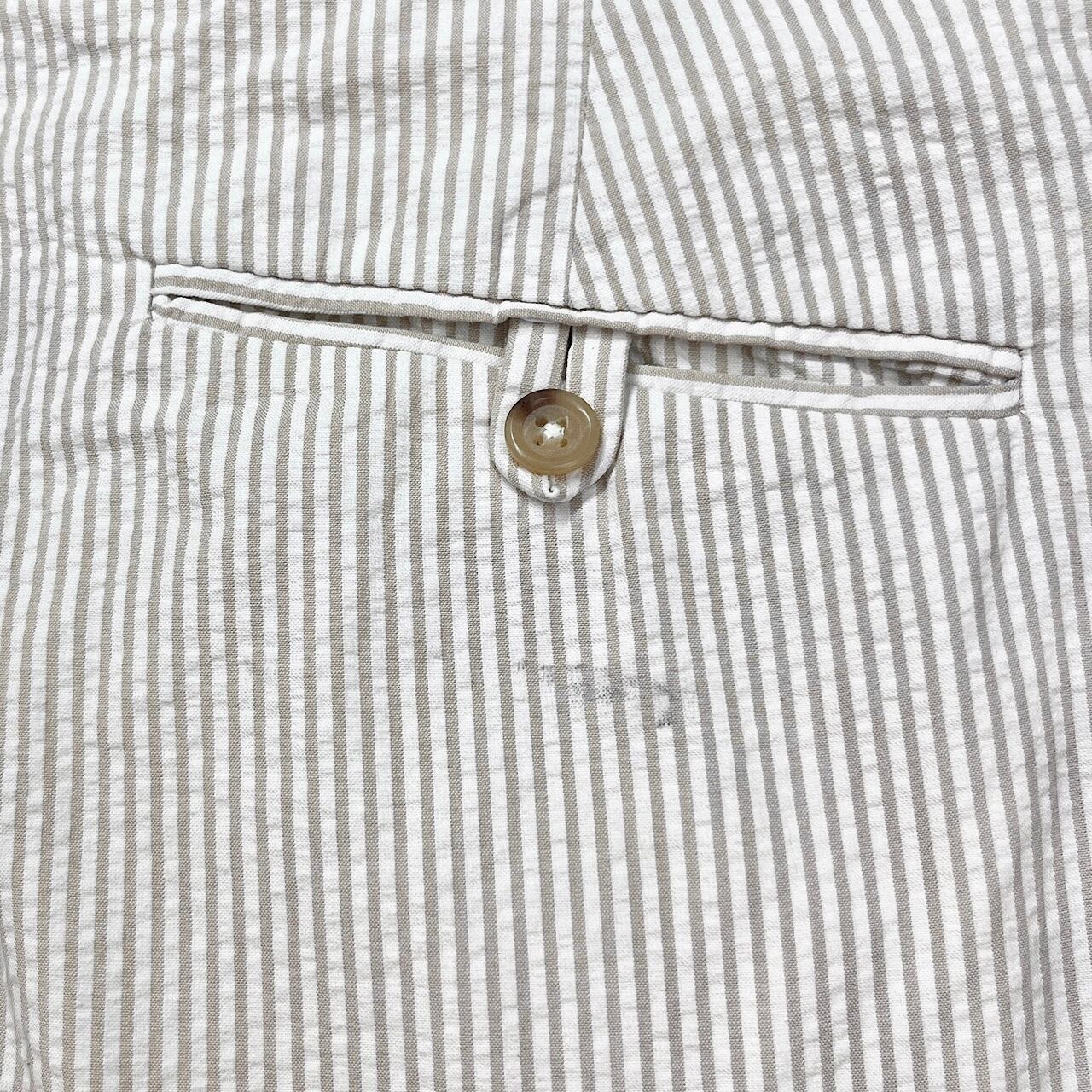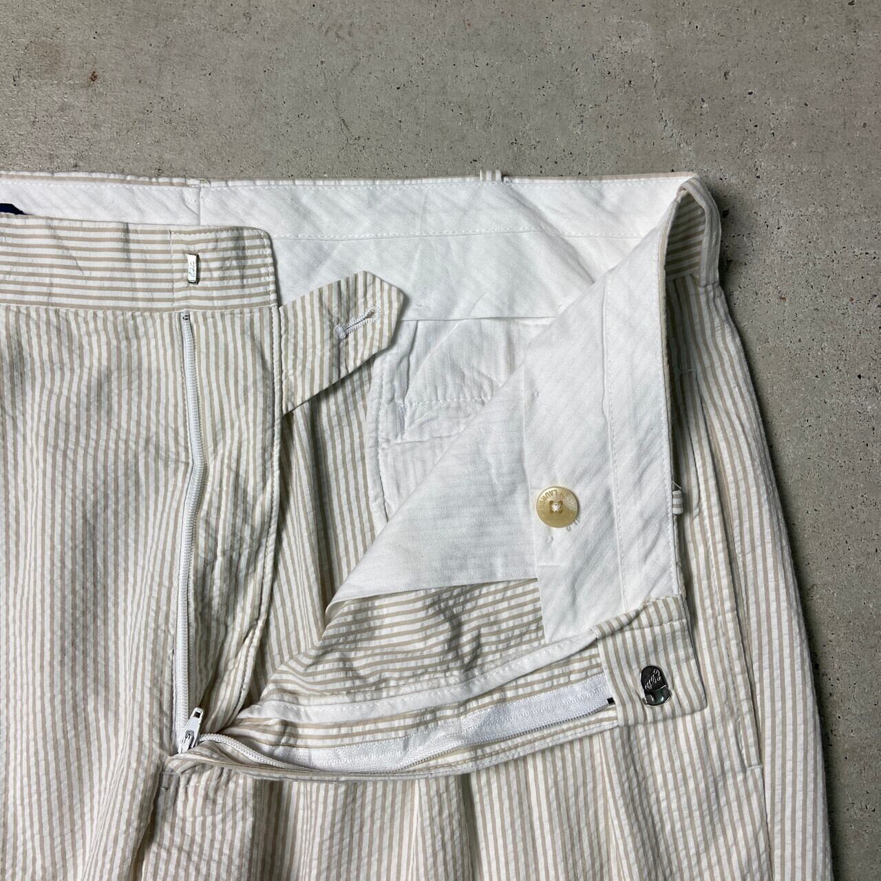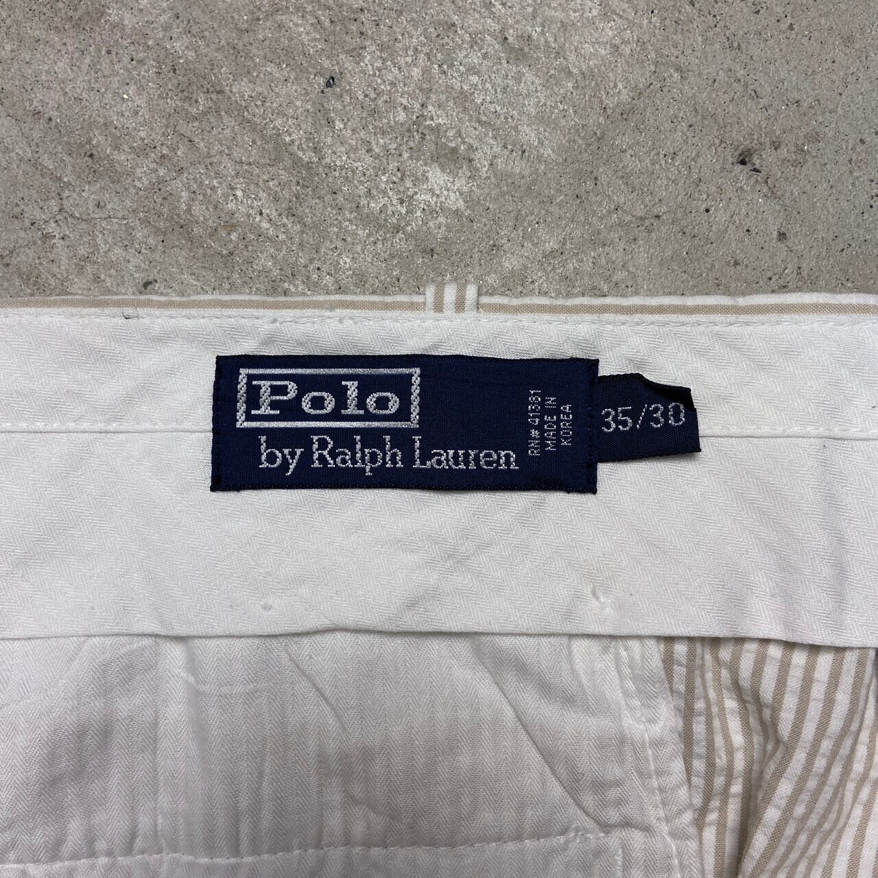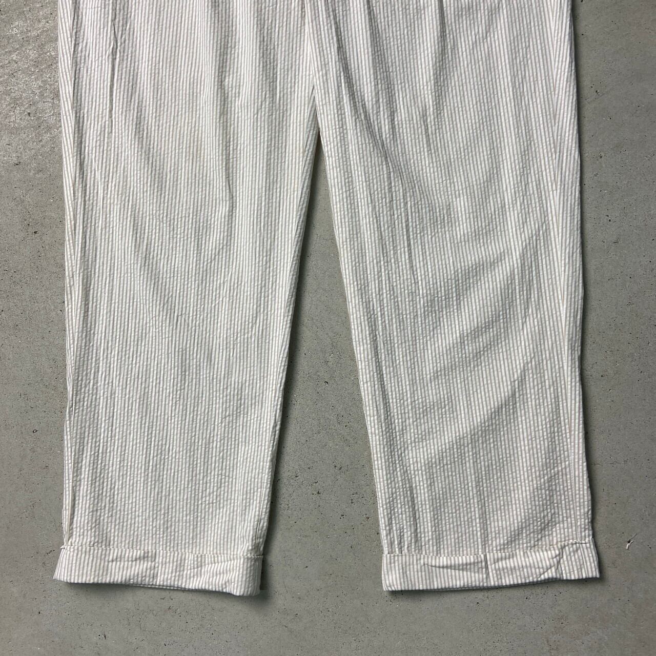 ■90年代 Polo by Ralph Lauren ポロバイラルフローレン シアサッカーパンツ 2タック ピンストライプ ポロチノ メンズW35 古着 90s ヴィンテージ VINTAGE ワイドチノパンツ ホワイト ベージュ ライトブラウン 白 茶色【チノパンツ,コットンパンツ】/ホワイト