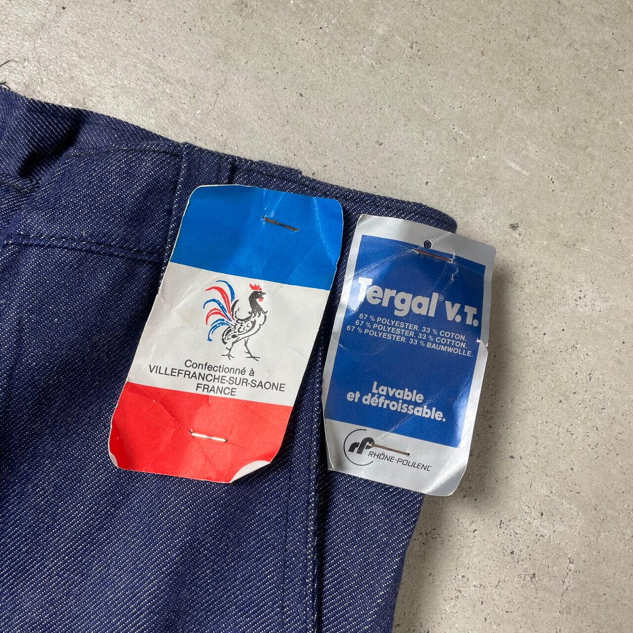 DEAD STOCK NOS 80年代 フランス製 TERGAL フレンチワークデニムパンツ ユーロワーク バットダイ メンズW32相当 古着 80s フラッシャー付き ペインターパンツ ヴィンテージ VINTAGE 【デニムパンツ】/ネイビー【BS25-30】