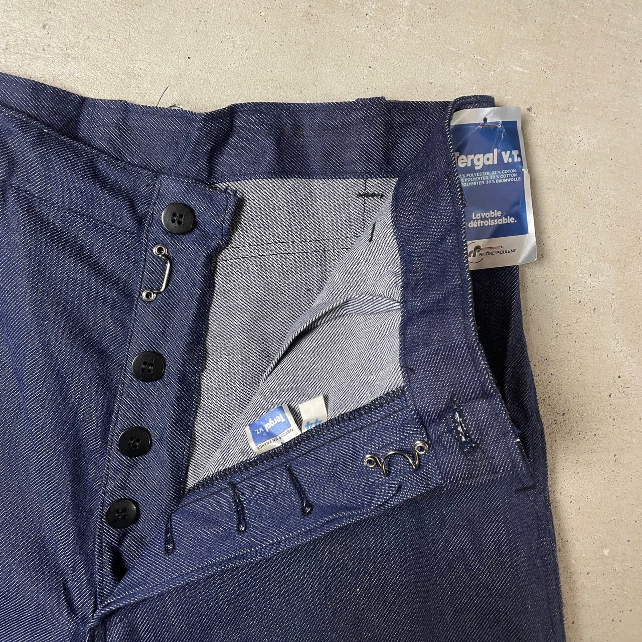 ■DEAD STOCK NOS 80年代 フランス製 TERGAL フレンチワークデニムパンツ ユーロワーク バットダイ メンズW32相当 古着 80s フラッシャー付き ペインターパンツ ヴィンテージ VINTAGE 【デニムパンツ】/ネイビー