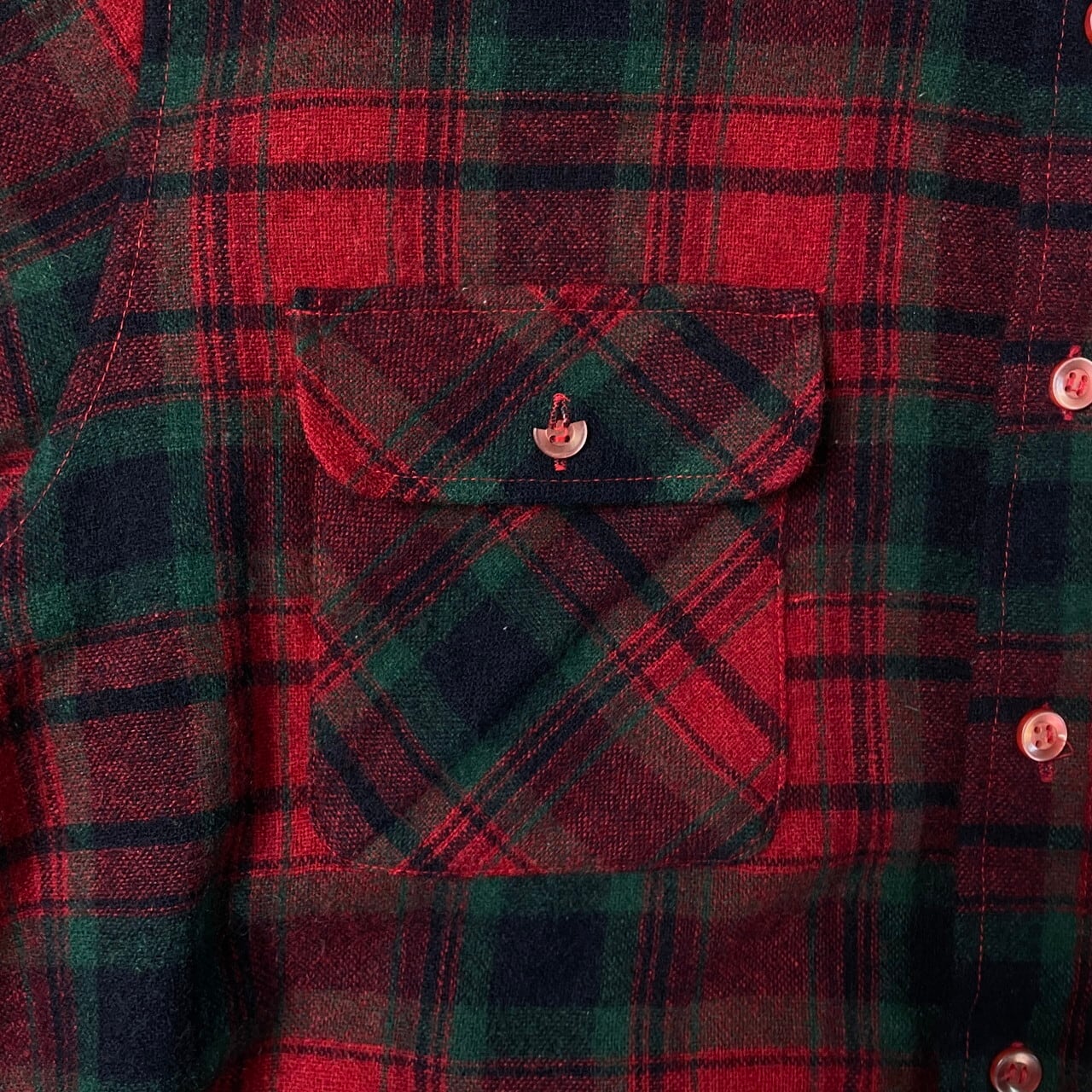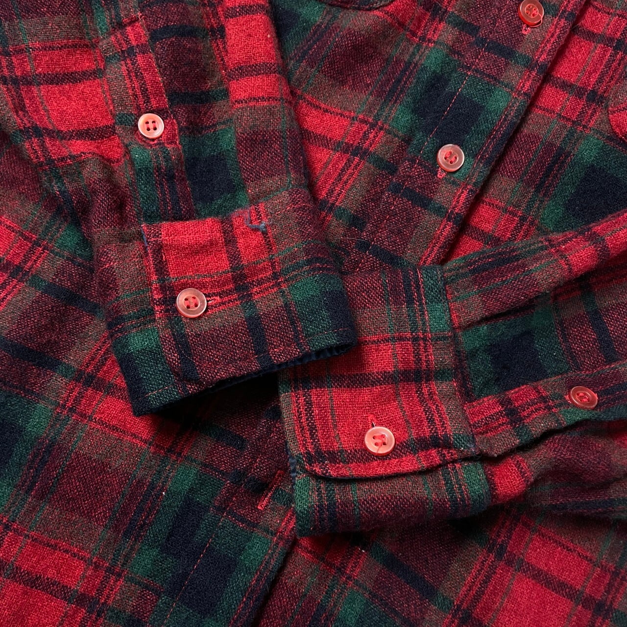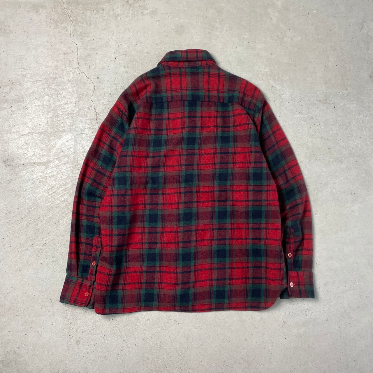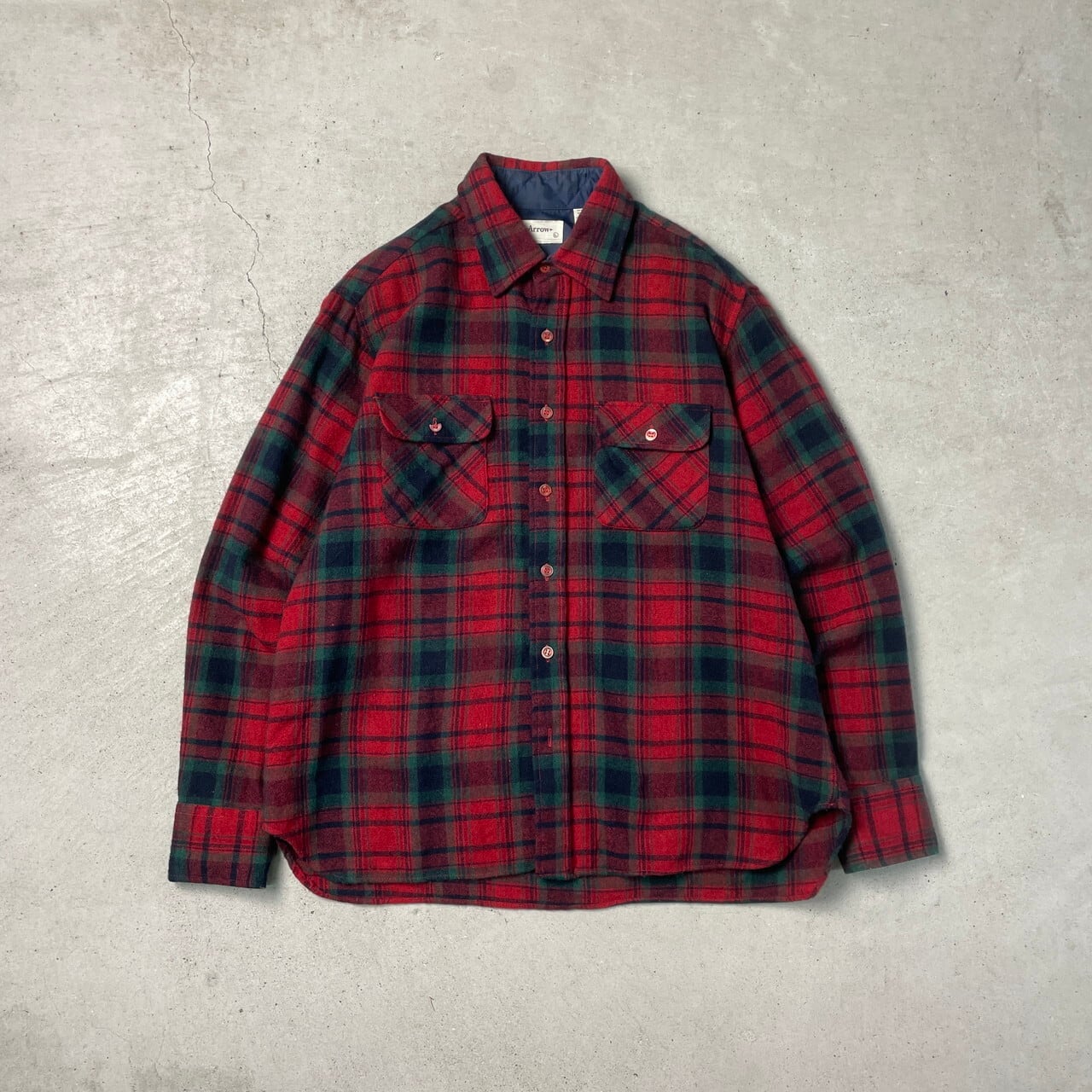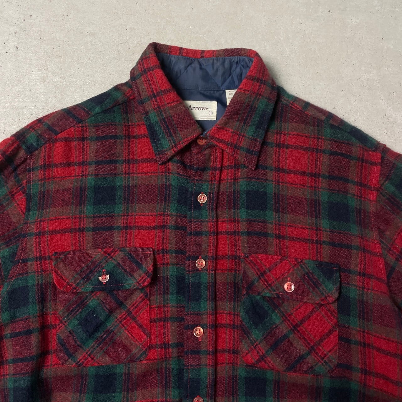 ■80年代 ARROW ウールシャツ チェック柄 メンズL 古着 80s ヴィンテージ VINTAGE ー 赤色 緑色 黒色 【長袖シャツ】/レッド