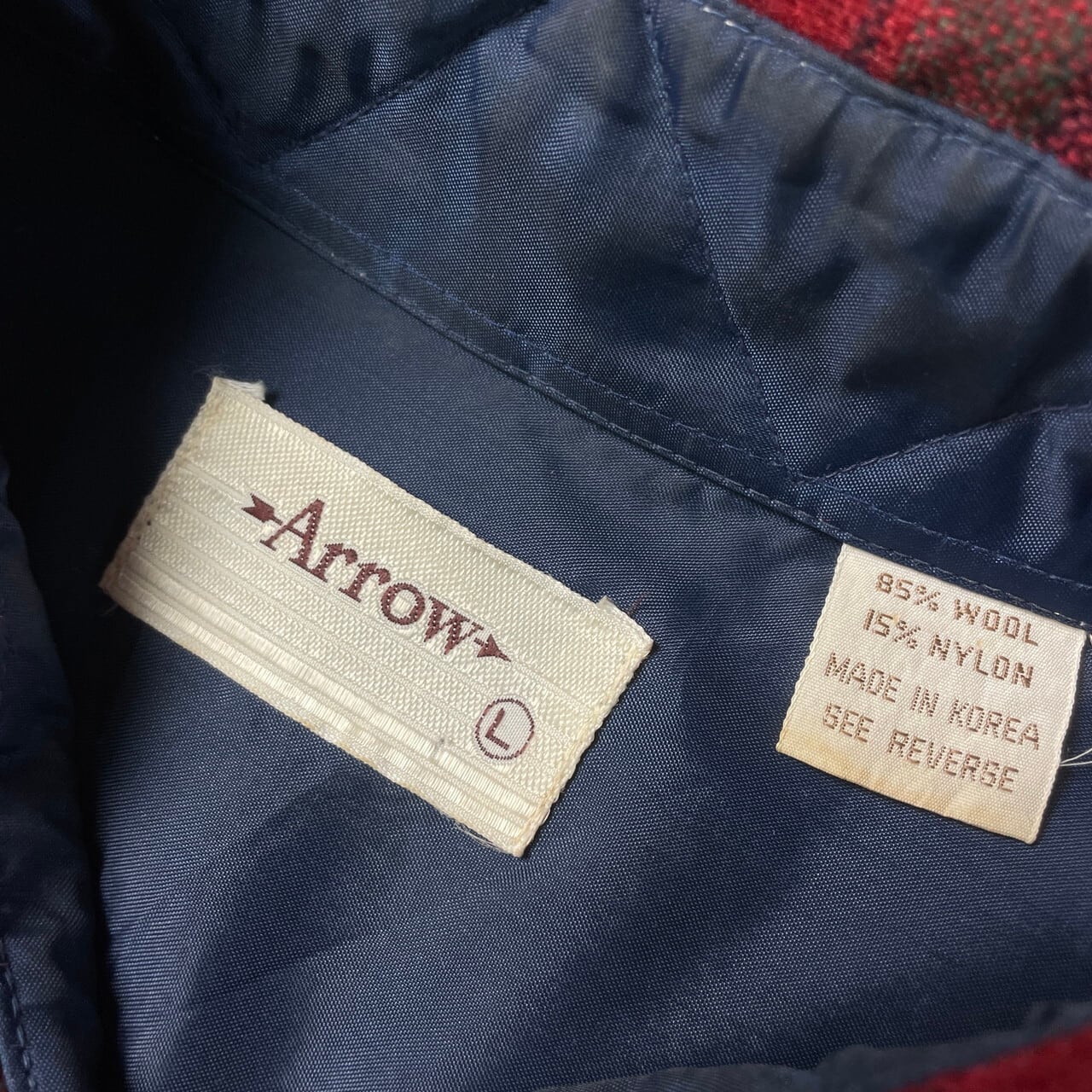 80年代 ARROW ウールシャツ チェック柄 メンズL 古着 80s ヴィンテージ VINTAGE ー 赤色 緑色 黒色 【長袖シャツ】/レッド【BS25-50】