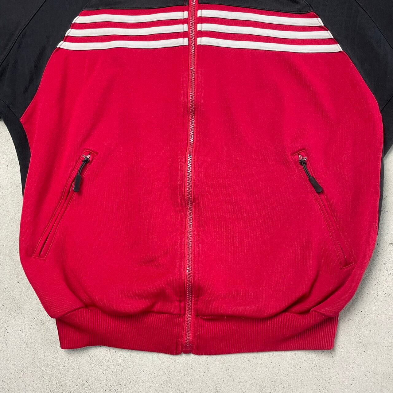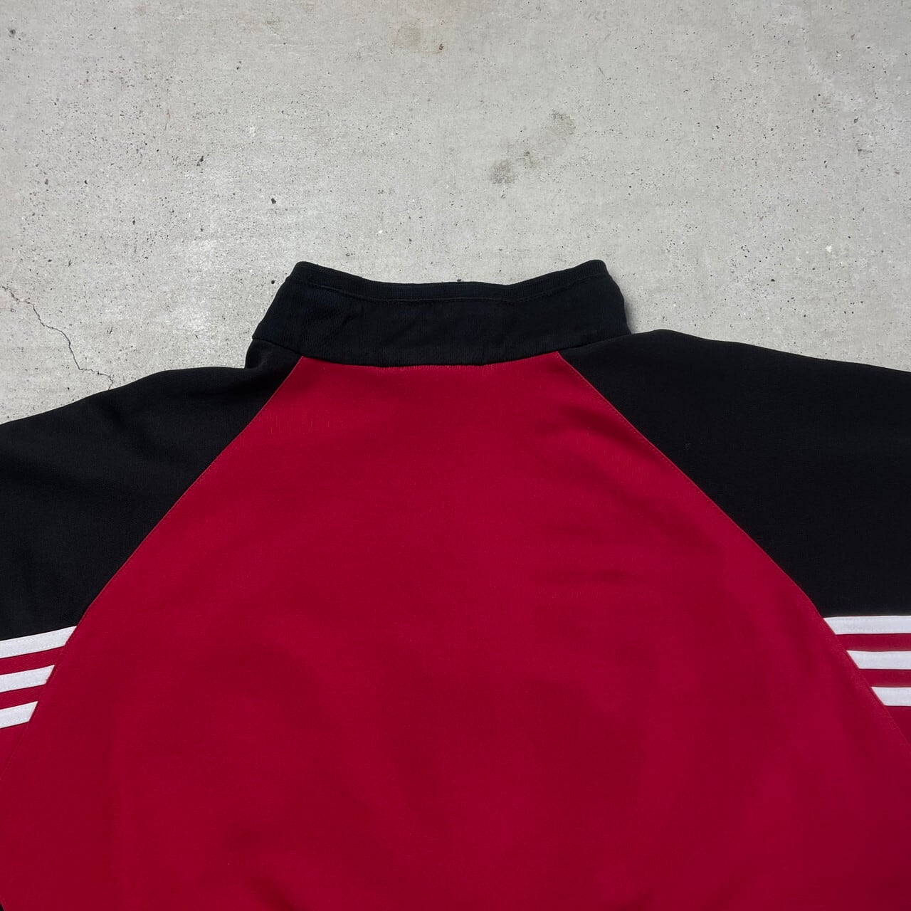 90年代 adidas アディダス トラックジャケット ジャージ メンズS相当 レディース 古着 90s パフォーマンスロゴ ヴィンテージ VINTAGE 切り替えデザイン ハイネック サイドライン 赤色 黒色 ブラック【ジャージ・トラックジャケット】/レッド【SA2501-30】【WS2501-40】【SS50-AW】