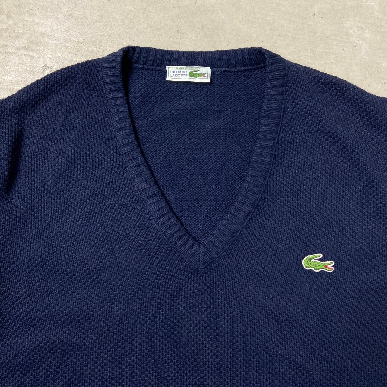 70年代 フランス製 CHEMISE LACOSTE ラコステ アクリルニットセーター Vネック メンズL相当 古着 70s VINTAGE ヴィンテージ フレンチラコステ フェイクレイヤード ネイビー 紺【スウェット】/ネイビー【WS2501-50】