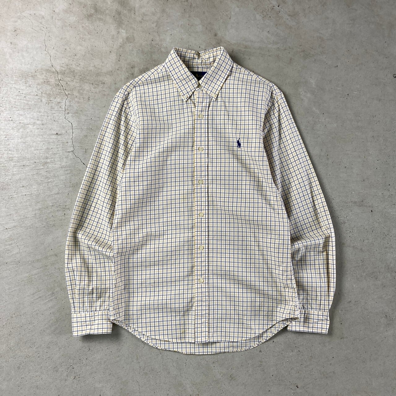 ■Ralph Lauren ラルフローレン SLIM FIT 長袖 チェックシャツ メンズM 古着 ボタンダウンシャツ B.Dシャツ イエロー 黄色 ネイビー 紺 ホワイト 白【長袖シャツ】/イエロー