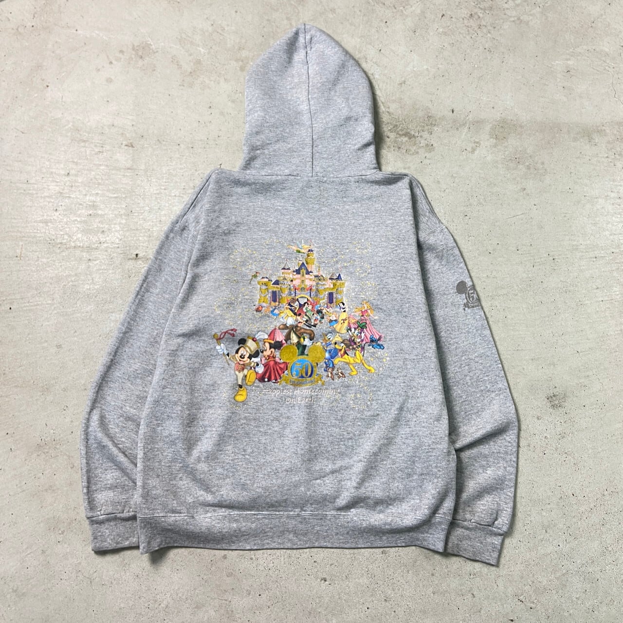 00年代 Disneyland ディズニーランド ミッキーマウス プリント スウェットパーカー キャラクター メンズM相当 レディース 古着 00s VINTAGE ヴィンテージ ディズニー フーディー 灰色【パーカー】/グレー【BS25-50】