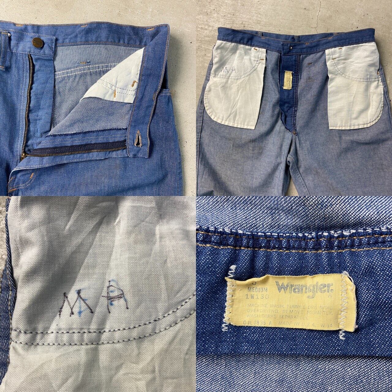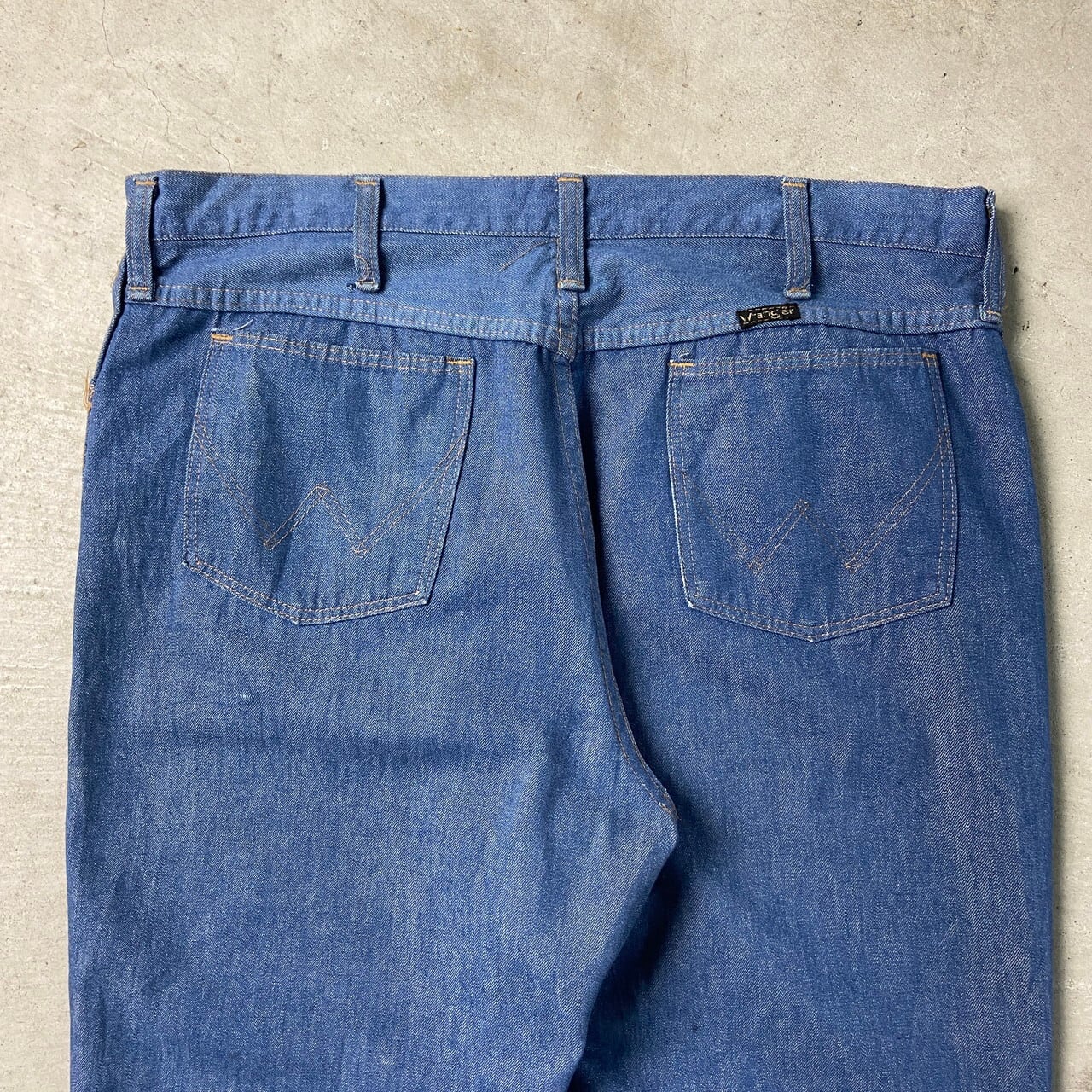 70年代 USA製 Wrangler ラングラー フレアデニムパンツ バットダイ 1W130 TALON カムロック メンズW38 古着 70s ヴィンテージ VINTAGE 青色【デニムパンツ】/ブルー