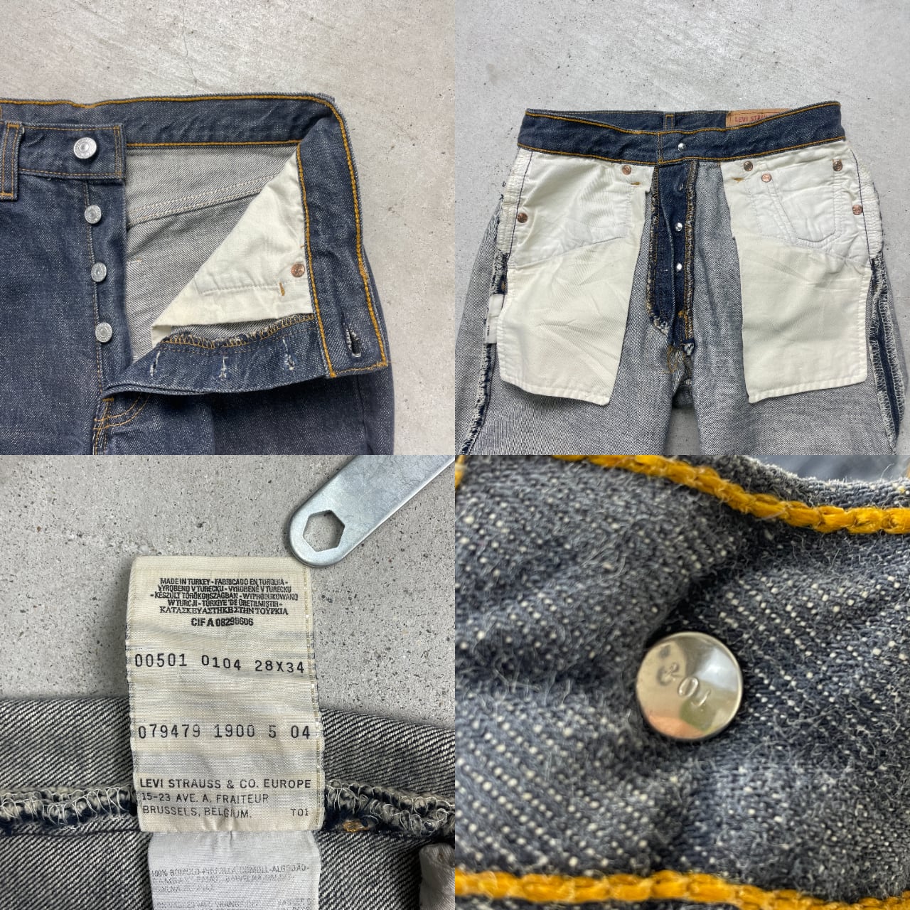 ■00年代 トルコ製 Levi's ユーロリーバイス 501 デニムパンツ スリットカスタム メンズW28 レディース 古着 00s ヴィンテージ VINTAGE アメカジ ストレート 濃色【デニムパンツ】/ネイビー