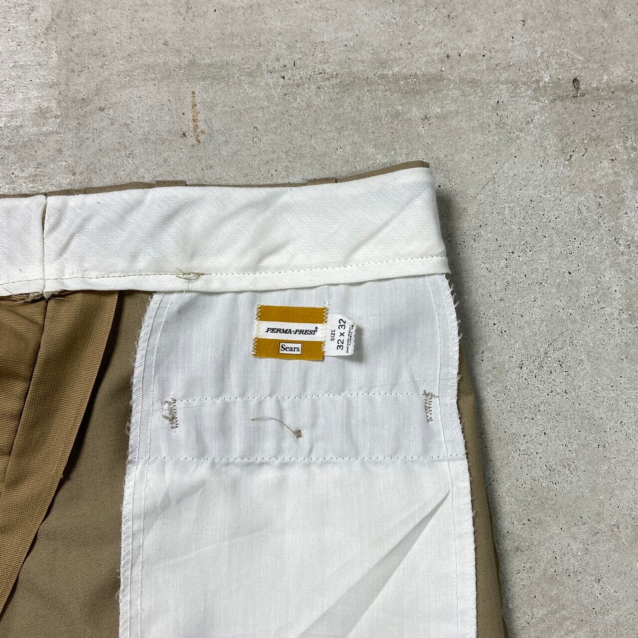 70年代 Sears PERMA-PREST シアーズ トラウザーパンツ チノパンツ 42TALON メンズW32 古着 70s ワイド チノパン ヴィンテージ VINTAGE ベージュ【チノパンツ,コットンパンツ】/ベージュ【WS2501-30P】