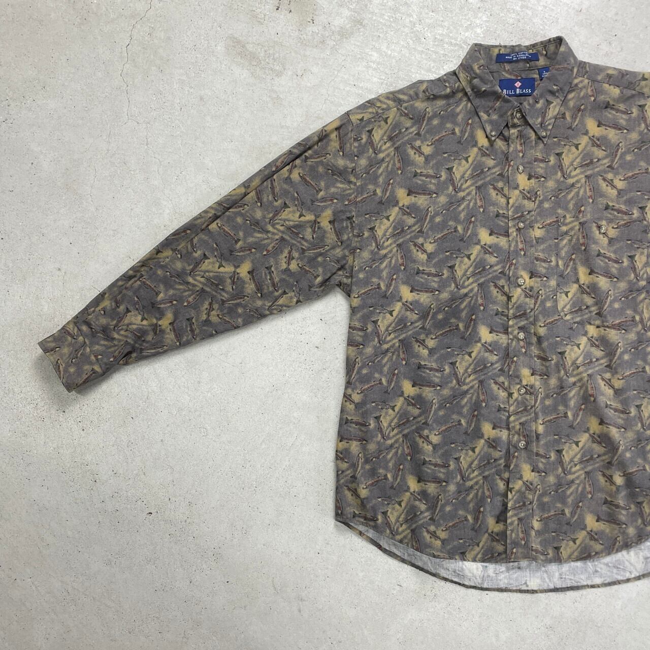 BILL BLASS 総柄 長袖シャツ フィッシュ 魚 アート ボタンダウン メンズXL相当 古着 B.Dシャツ ビッグサイズ 大きいサイズ 【長袖シャツ】/マルチカラー【SA2501-30】【WS2501-50】