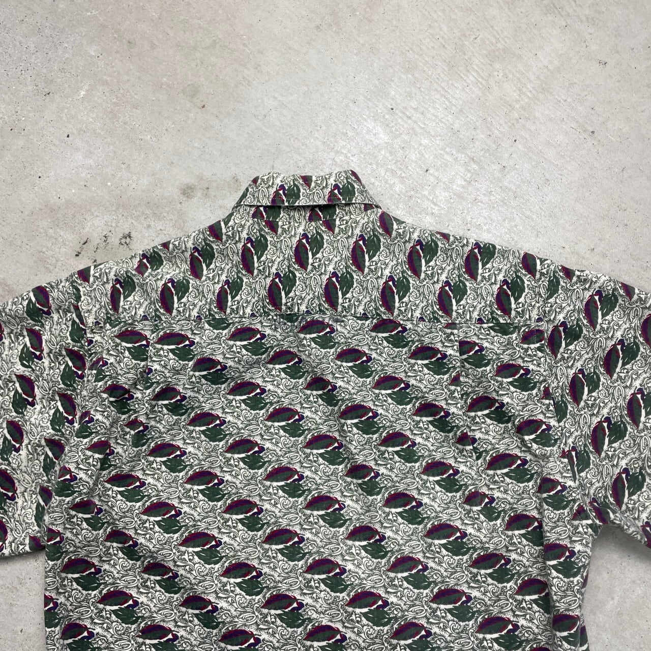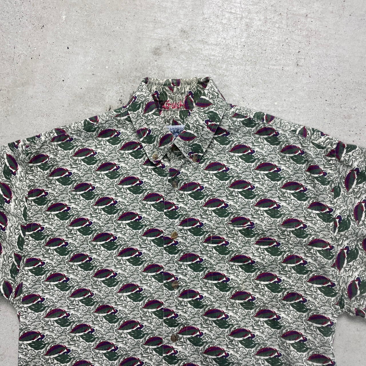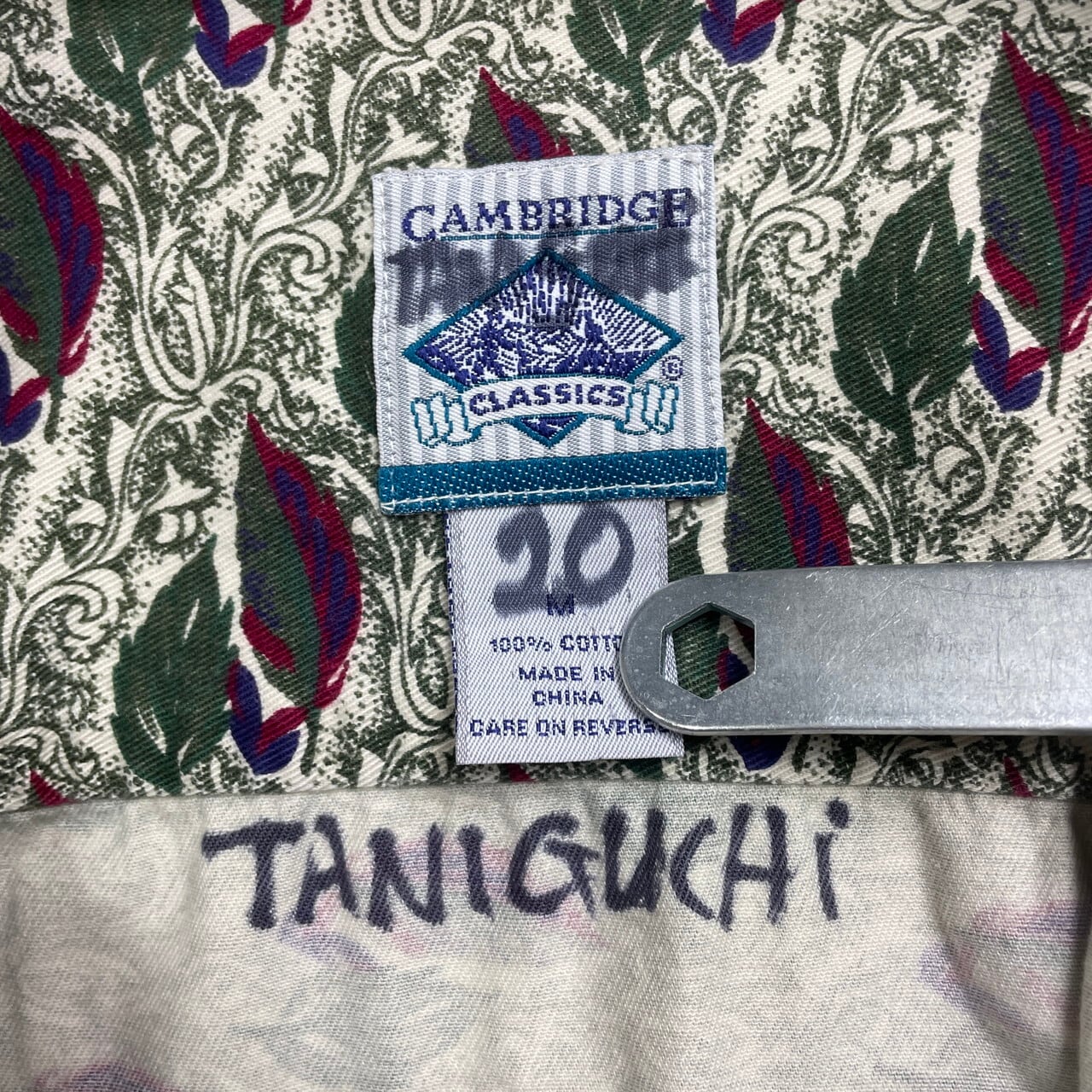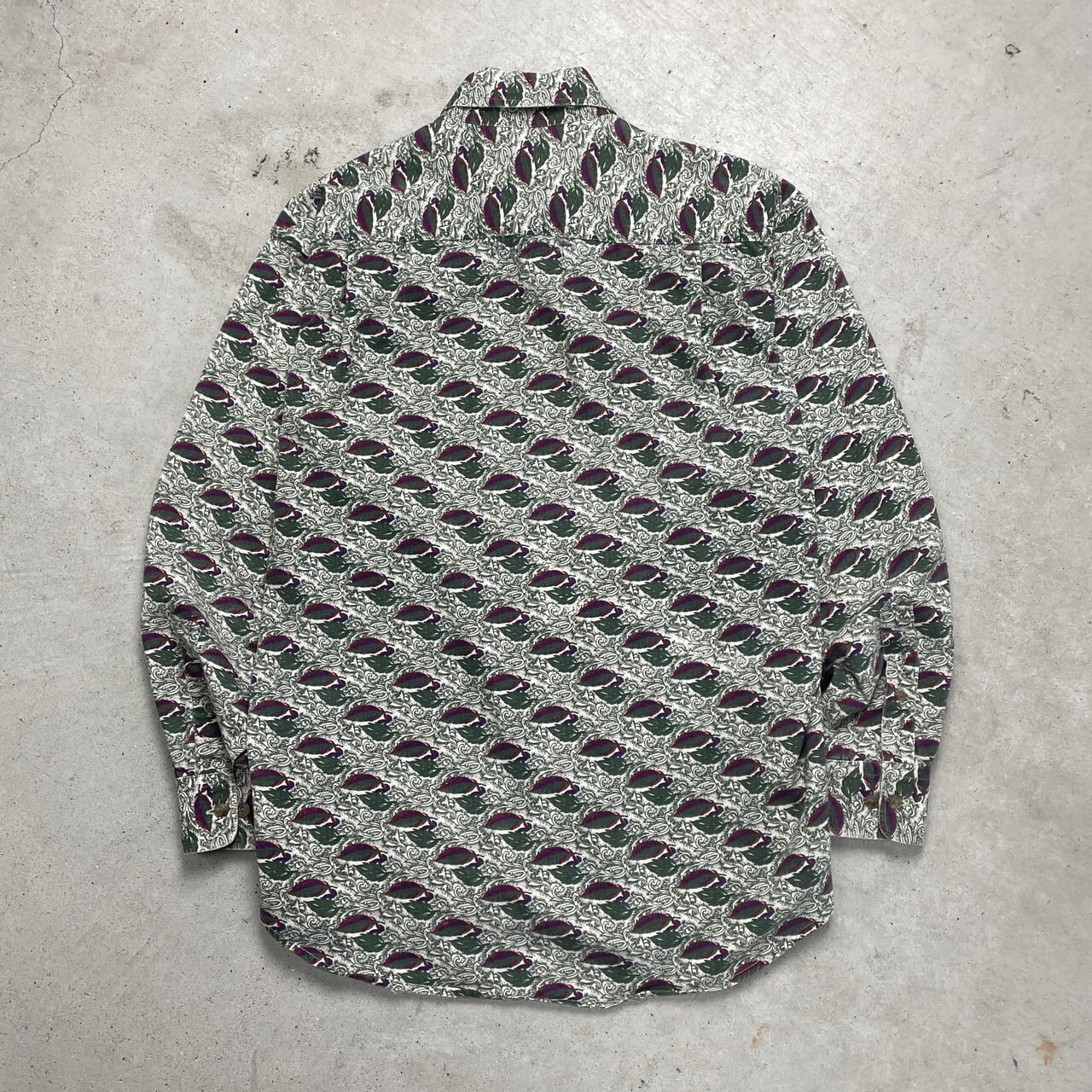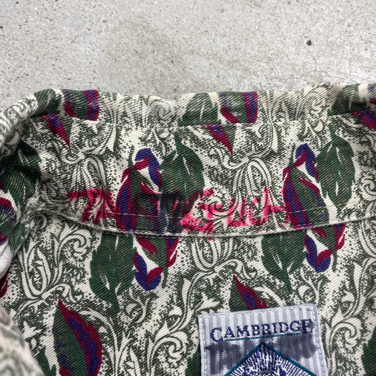 CAMBRIDGE 総柄 長袖シャツ リーフ ボタンダウン メンズL相当 古着 B.Dシャツ 緑色【長袖シャツ】/グリーン【BS25-50】