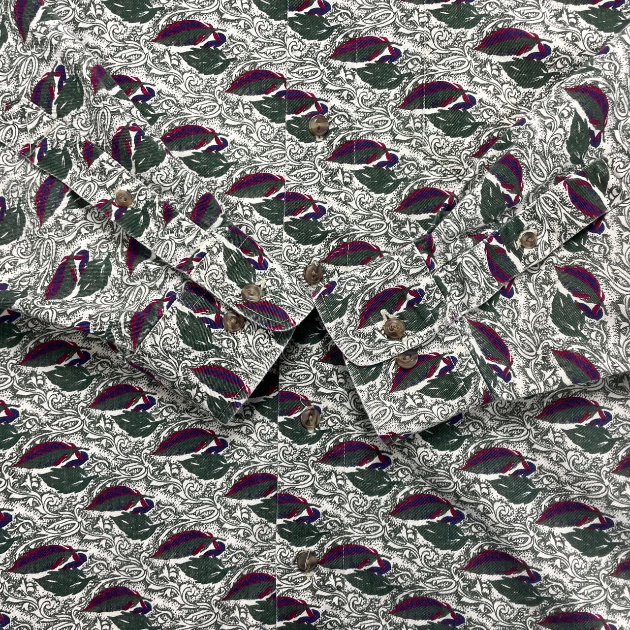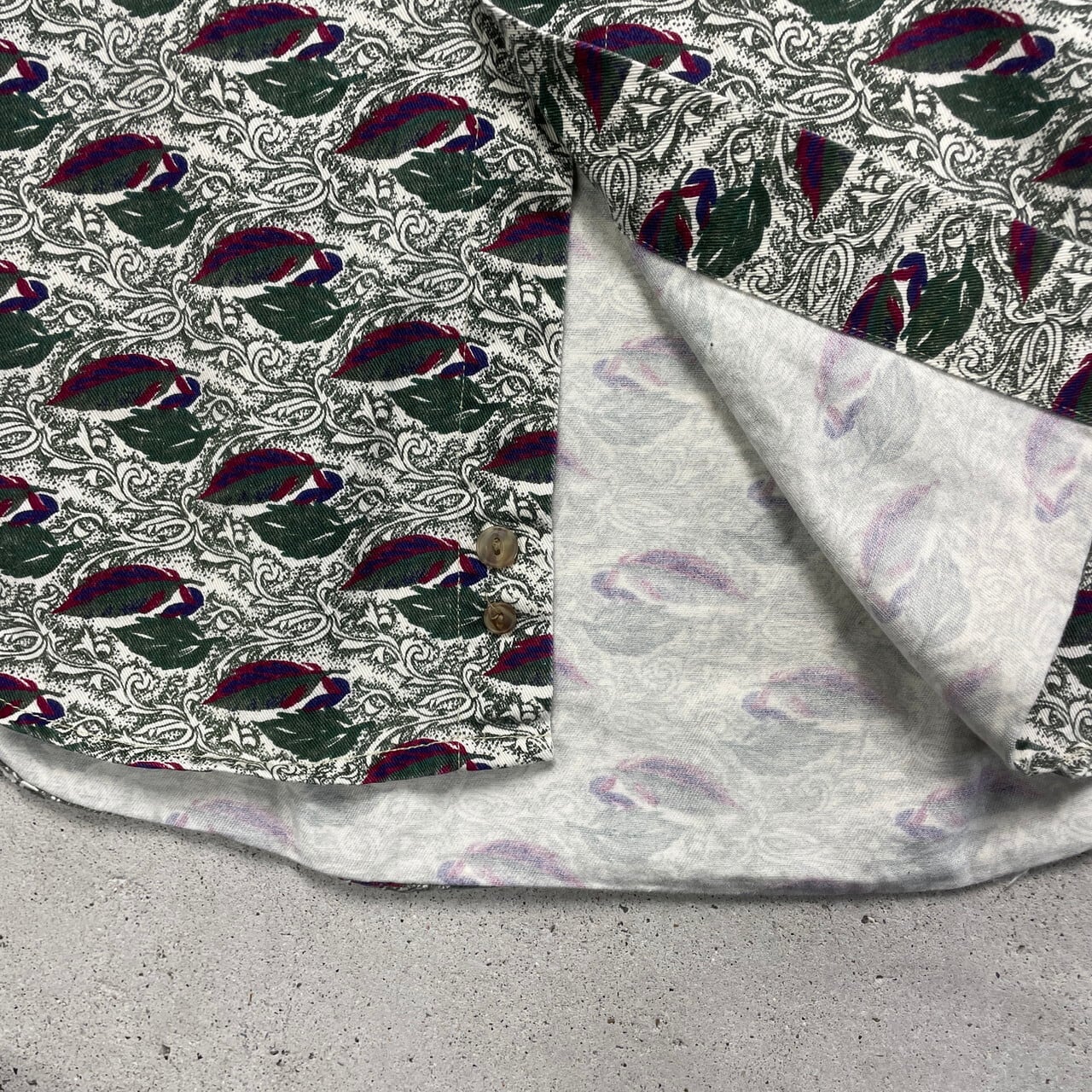 ■CAMBRIDGE 総柄 長袖シャツ リーフ ボタンダウン メンズL相当 古着 B.Dシャツ 緑色【長袖シャツ】/グリーン