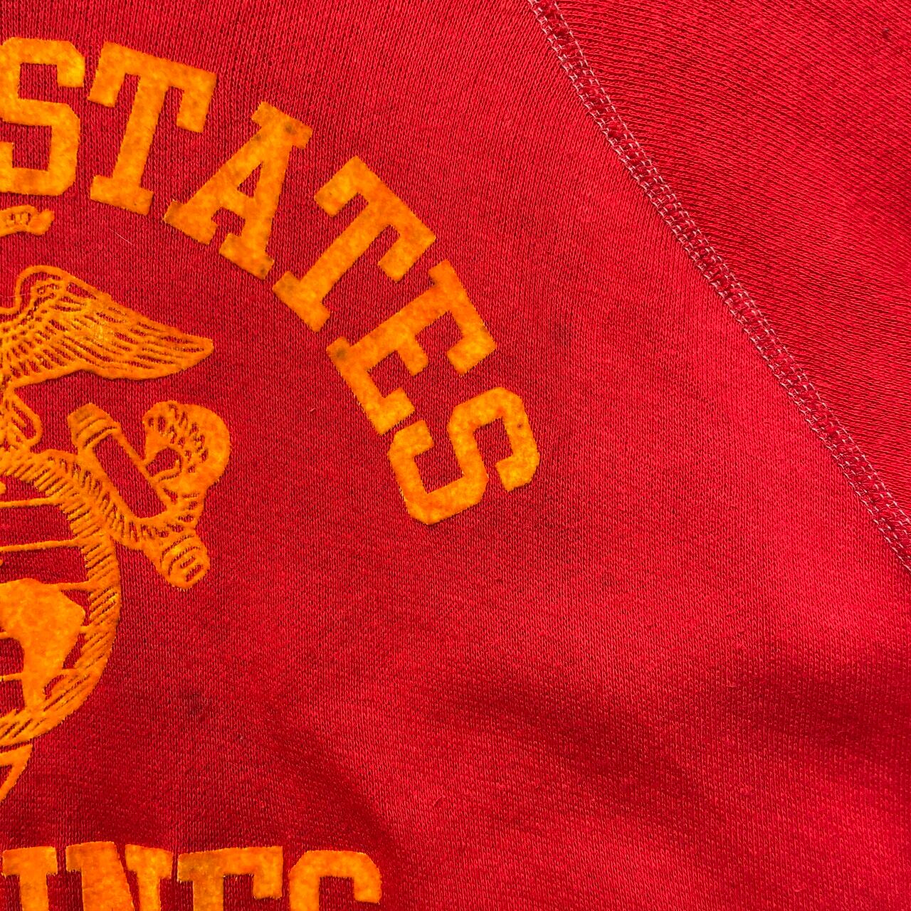 ■80年代 USA製 ARTEX UNITED STATES MARINES フロッキープリント スウェットパーカー ラグランスリーブ メンズM相当 古着 80s アメカジ フーディー ヴィンテージ VINTAGE 赤色 黄色 イエロー【パーカー】/レッド