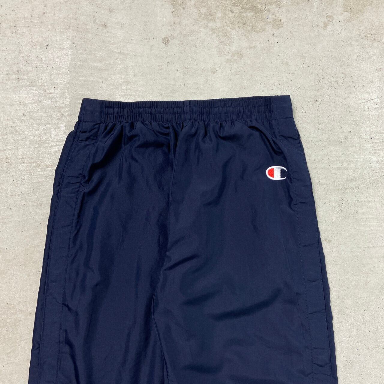 00年代 Champion チャンピオン ナイロンパンツ ロゴ刺繍 目つき メンズL相当 W28相当 古着 00s Y2K サイドスナップ付き ヴィンテージ VINTAGE 紺【ジャージ,ナイロンパンツ】/ネイビー【WS2501-30P】