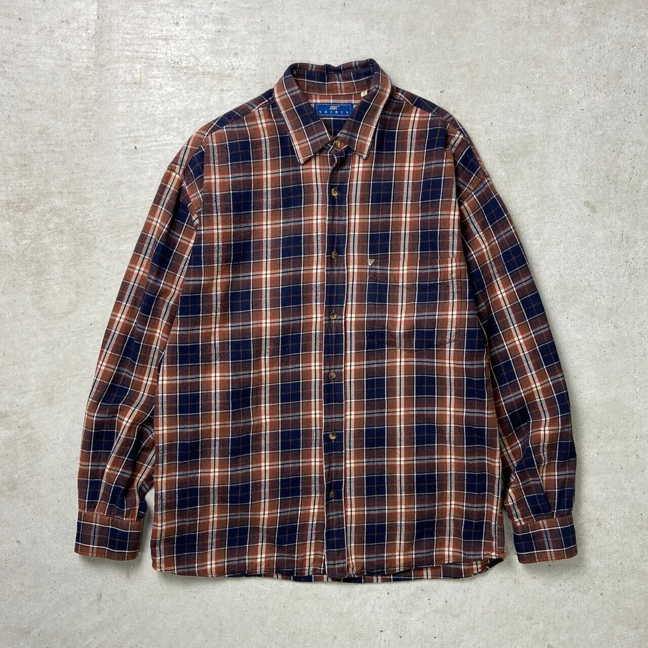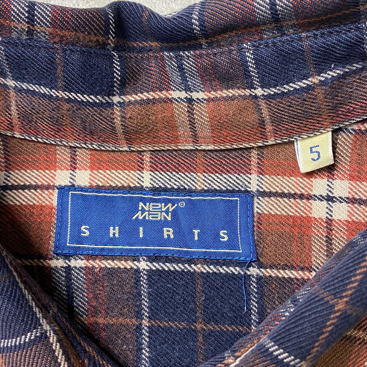 ■NEWMAN SHIRTS 長袖 ライトネルシャツ チェックシャツ メンズL相当 古着 ネルシャツ アメカジ ブラウン 茶色 ネイビー 紺 ホワイト 白【長袖シャツ】/マルチカラー
