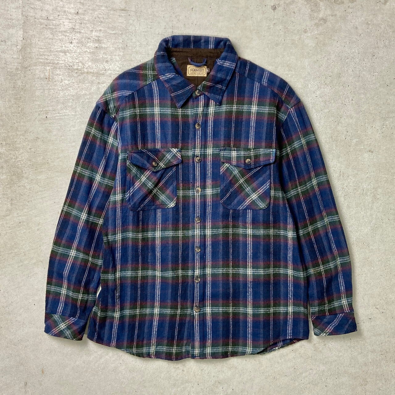 ■90年代 SCHMIDT WORKWEAR ネルシャツ チェックシャツ メンズL 古着 90s ヴィンテージ VINTAGE ネイビー 紺 レッド 赤 グリーン 緑 ホワイト 白【長袖シャツ】/マルチカラー