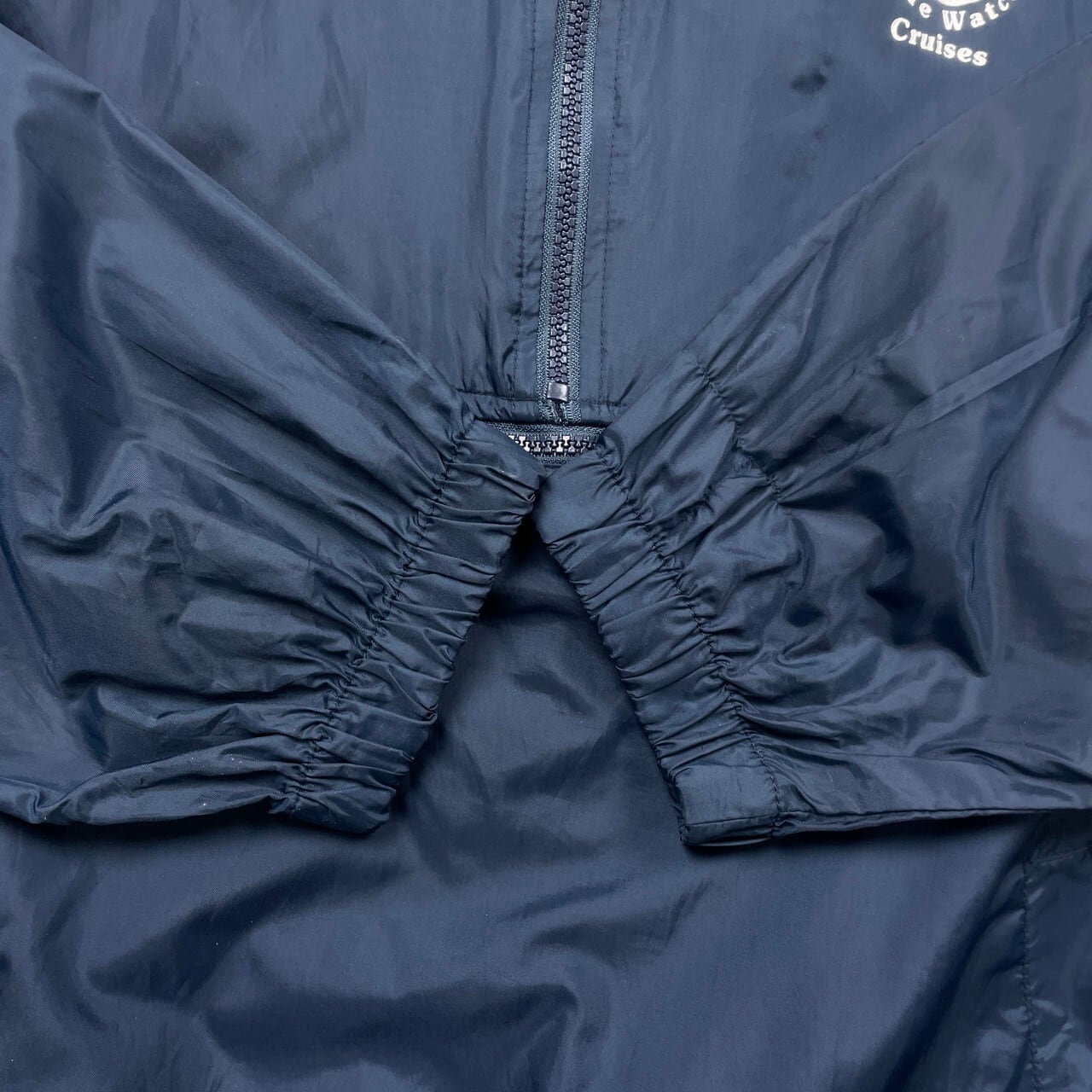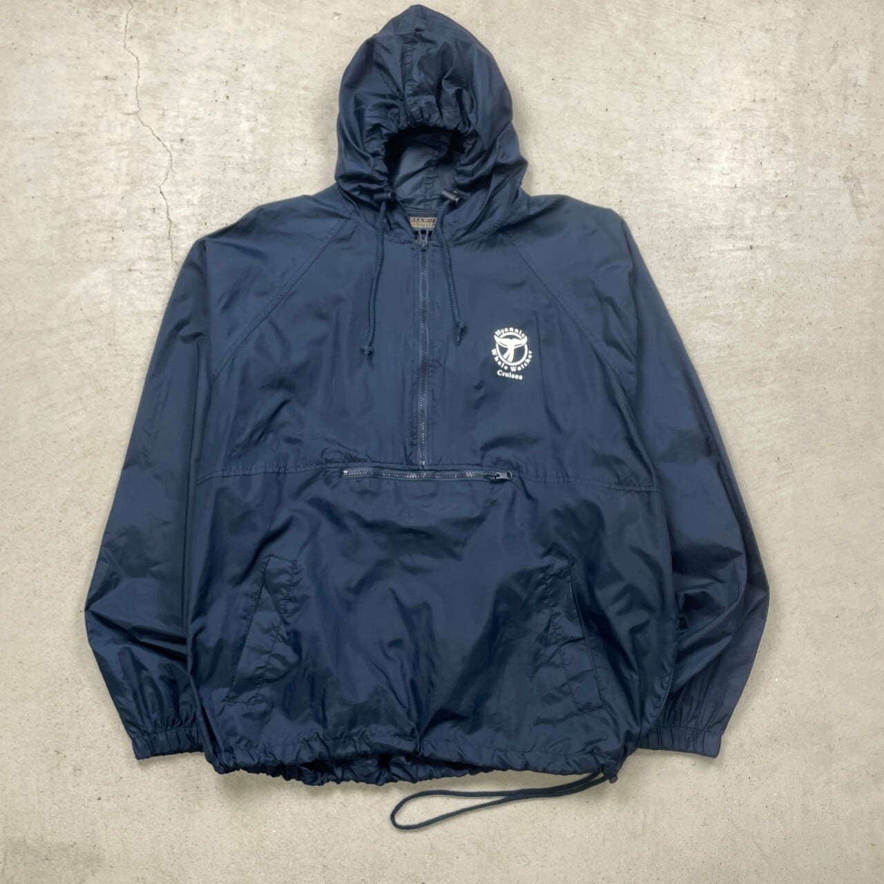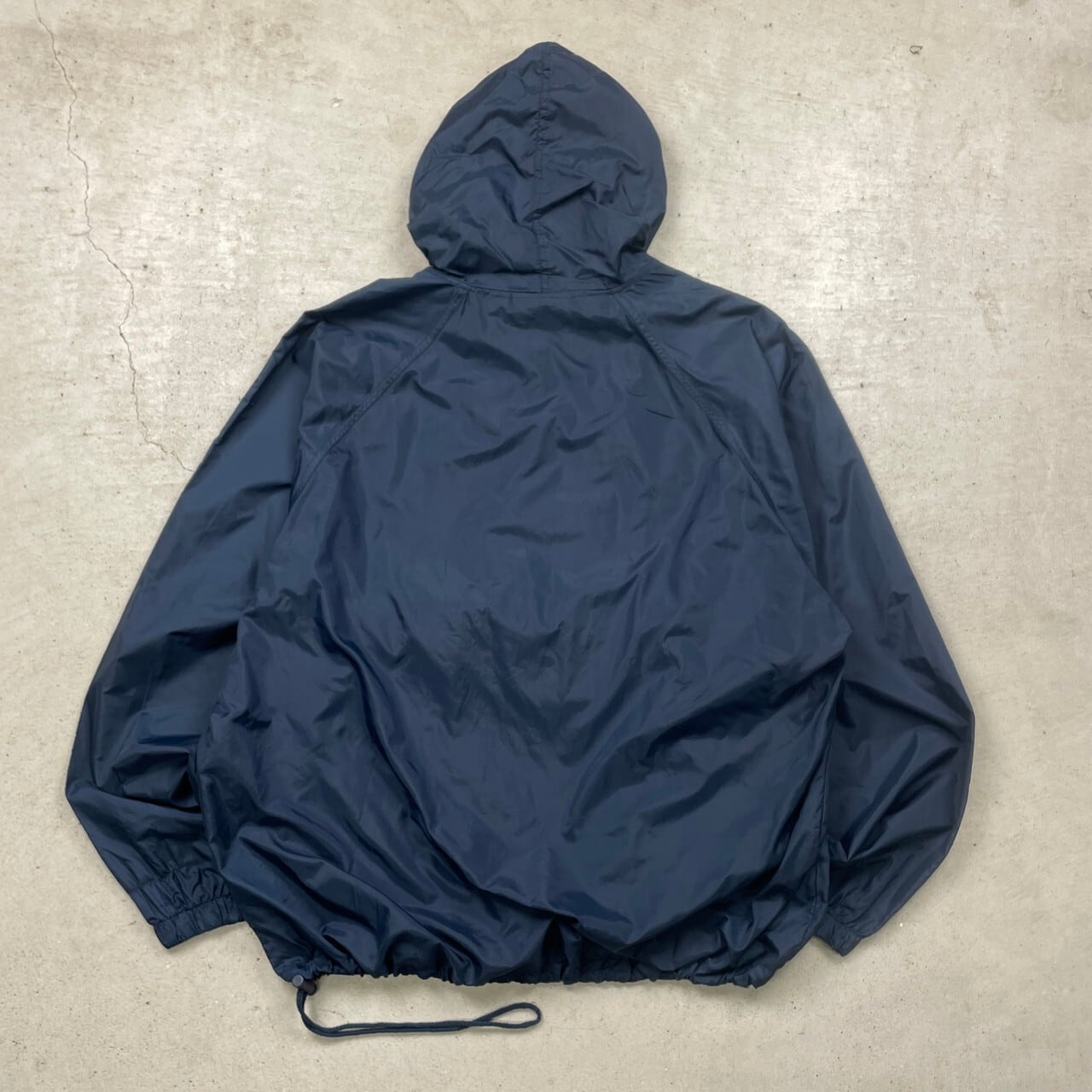 HARVARD SQUARE ナイロンアノラックパーカー ナイロンジャケット 企業ロゴプリント メンズXL相当 古着 ドローコード VINTAGE ヴィンテージ 紺色 【ナイロンジャケット】/ネイビー【BS25-50】