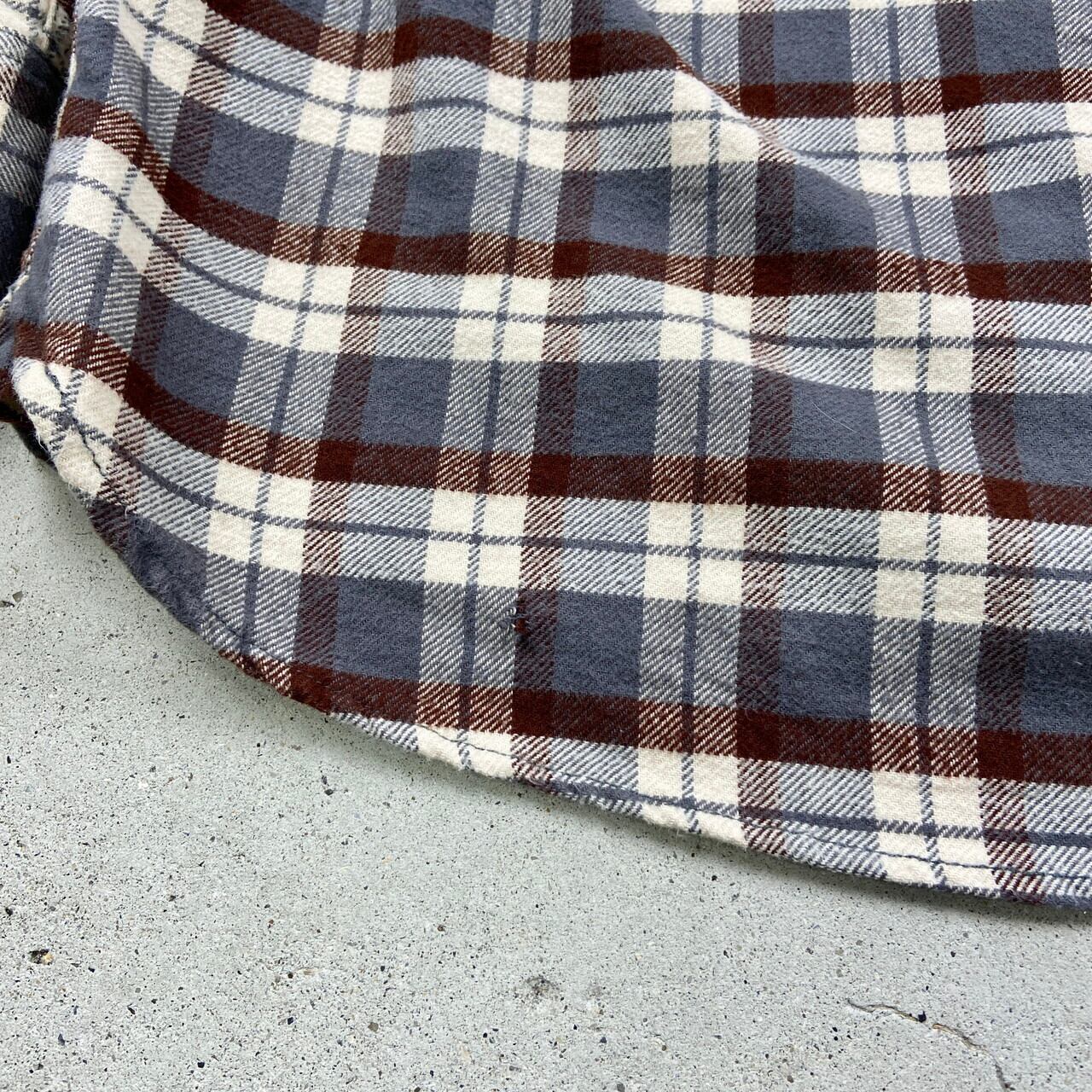 ■JACHS ネルシャツ ブキャナンチェックシャツ マチ付き メンズ2XL相当 古着 アメカジ VINAGE ヴィンテージ ブラウン ホワイト オリエンタルブルー【長袖シャツ】/マルチカラー