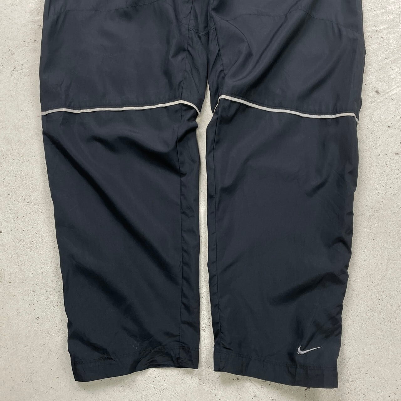 00年代 NIKE ナイキ ナイロントラックパンツ リフレクター 裾ジップ メンズXL相当 古着 00s Y2K ヴィンテージ VINTAGE スウォッシュロゴ 刺繍 黒色【ジャージ,ナイロンパンツ】/ブラック【BS25-50】