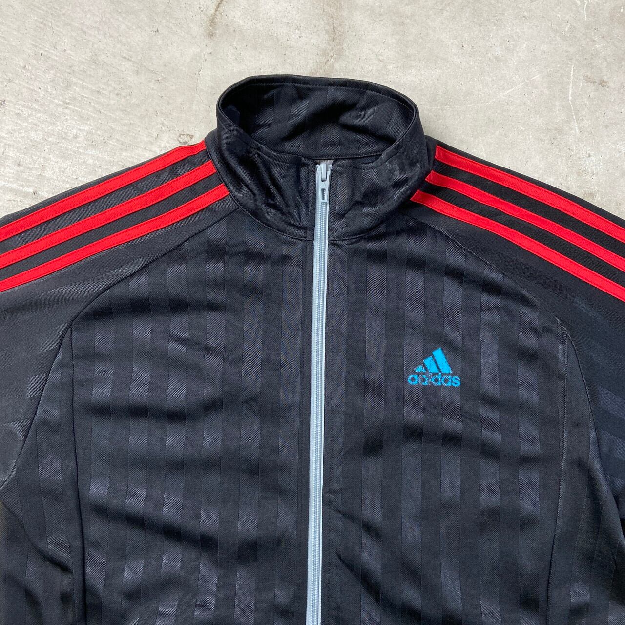 adidas アディダス トラックジャケット ジャージ サイドライン バックプリント メンズM 古着 パフォーマンスロゴ ハイネック シャドーストライプ 黒 レッド 赤色【ジャージ・トラックジャケット】/ブラック【SA2501-30】【WS2501-50】