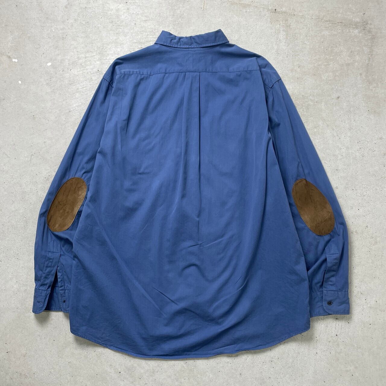 ■90年代 Polo by RALPH LAUREN ポロバイラルフローレン エルボーパッチ 長袖シャツ Wポケット フラップポケット メンズXL 古着 90s ヴィンテージ VINTAGE ライトブルー【長袖シャツ】/ブルー