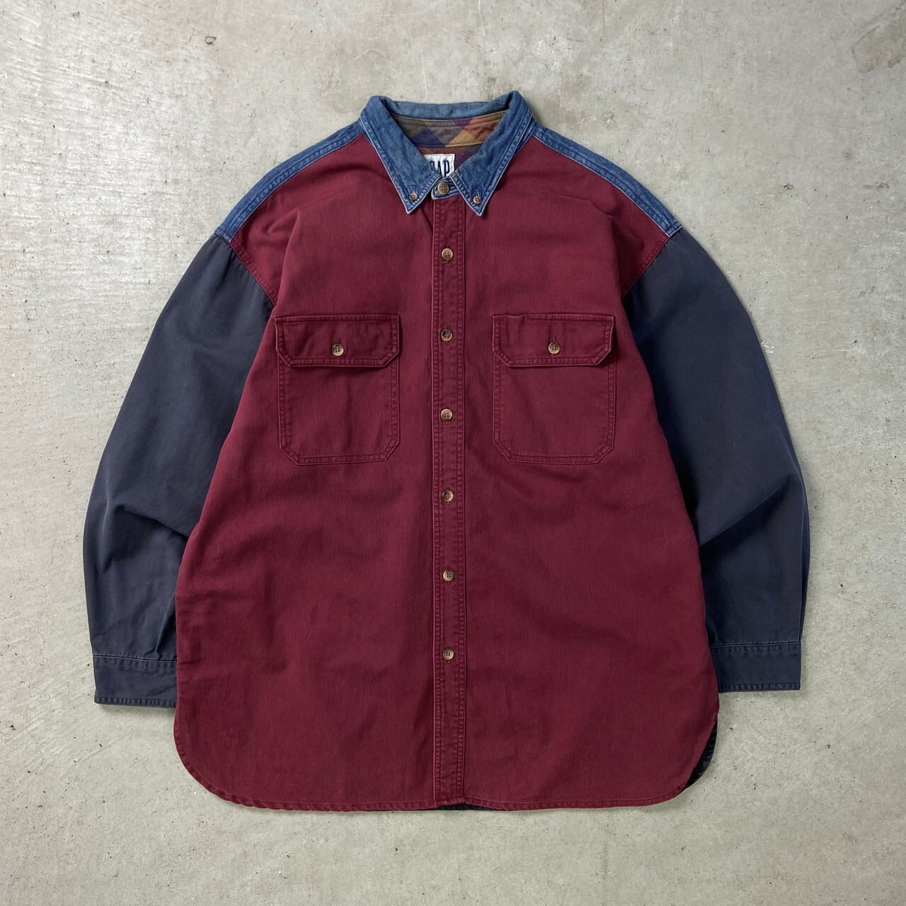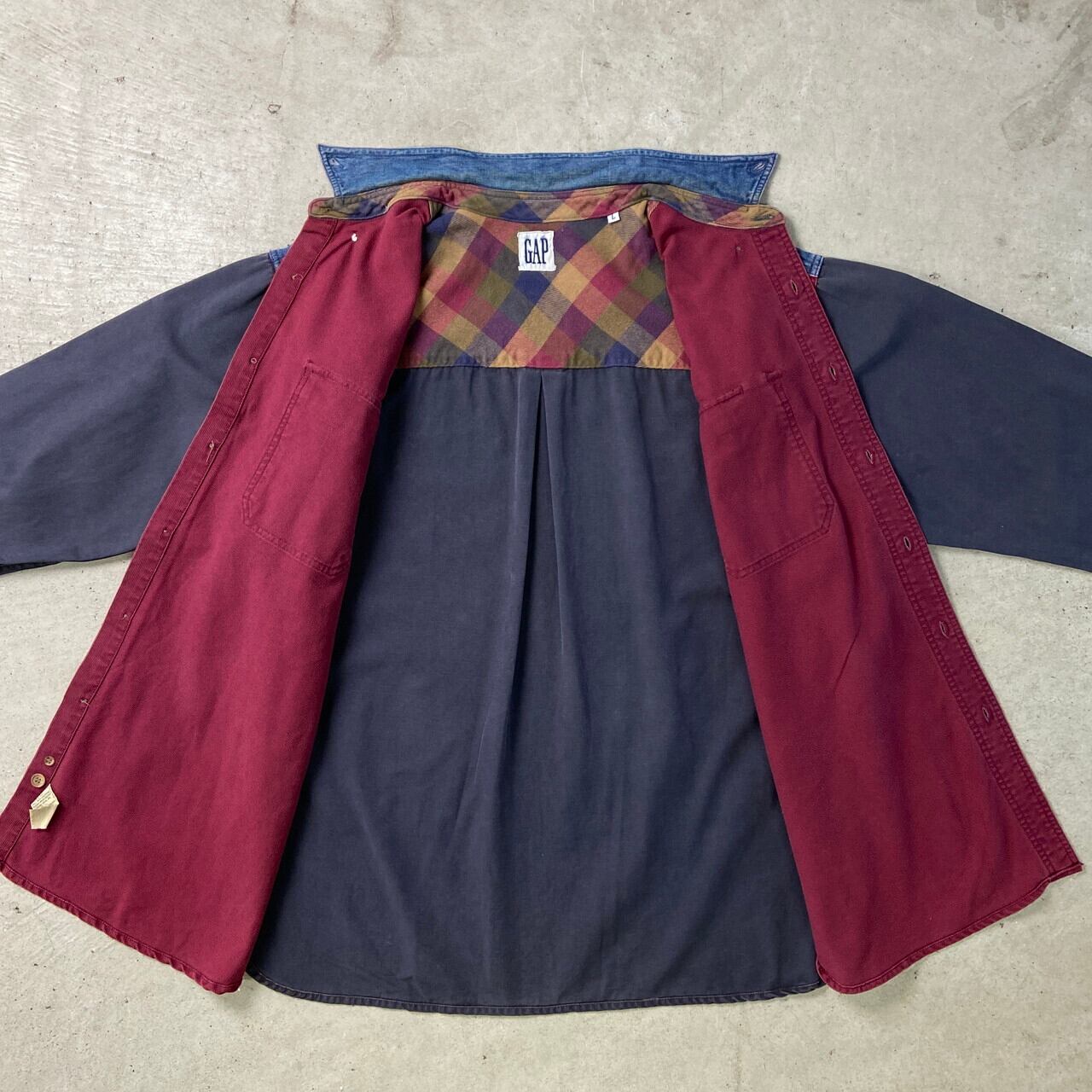 90年代 GAP オールドギャップ 長袖シャツ クレイジーパターン コーデュロイ デニム コットンツイル メンズXL相当 古着 90s 切り替えデザイン ヴィンテージ VINTAGE 【長袖シャツ】/マルチカラー【SA2501-30】【WS2501-50】【SS50-AW】