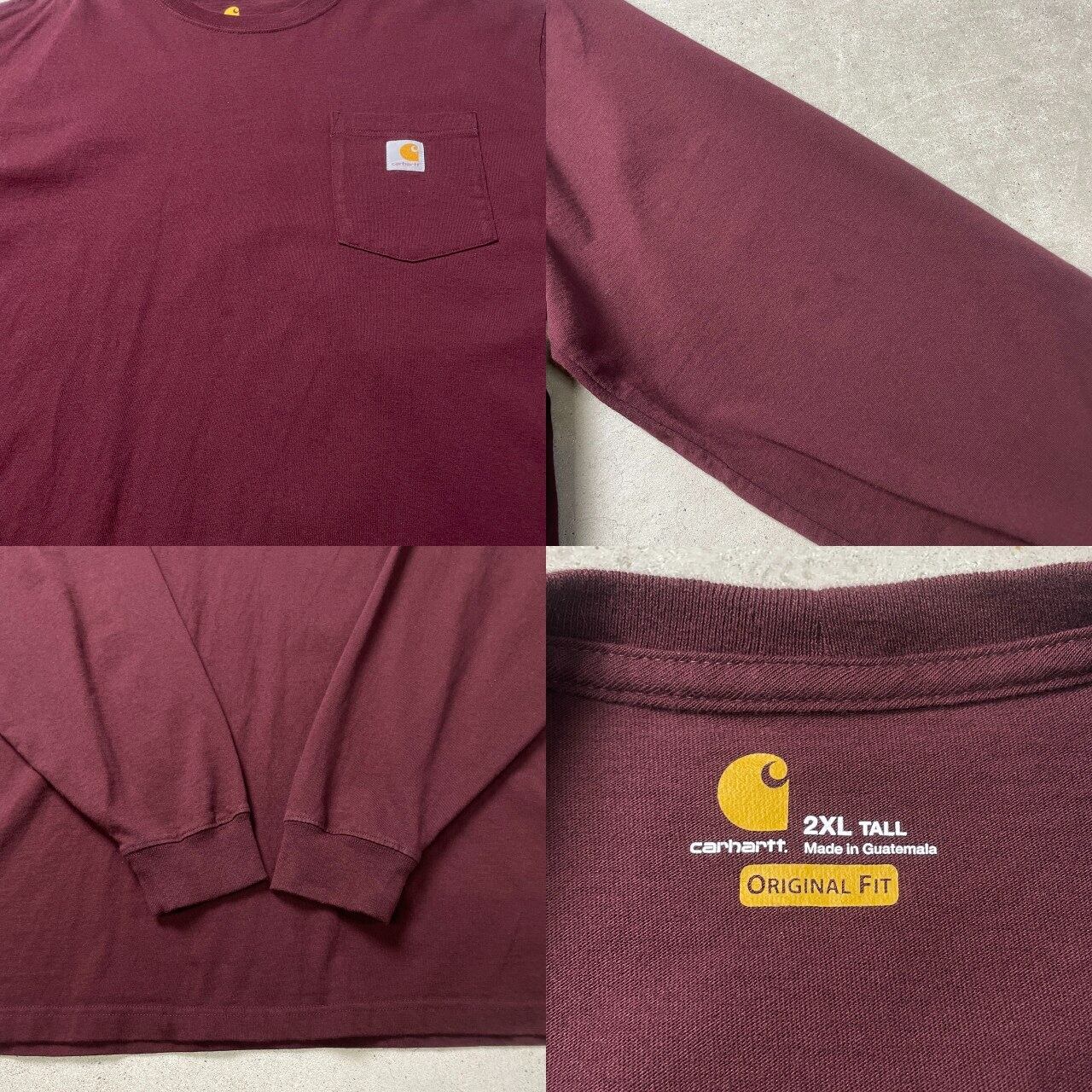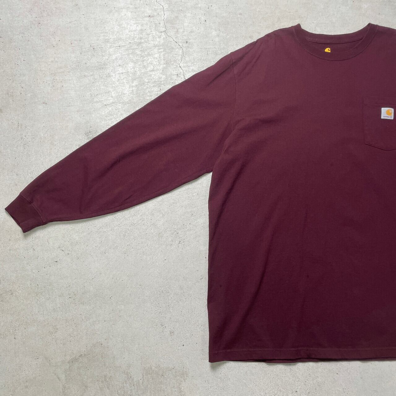 ■Carhartt カーハート ポケットTシャツ ロングTシャツ メンズ2XLT 古着 VINTAGE ヴィンテージ 大きいサイズ ビッグサイズ えんじ色【ロングTシャツ】/ワインレッド
