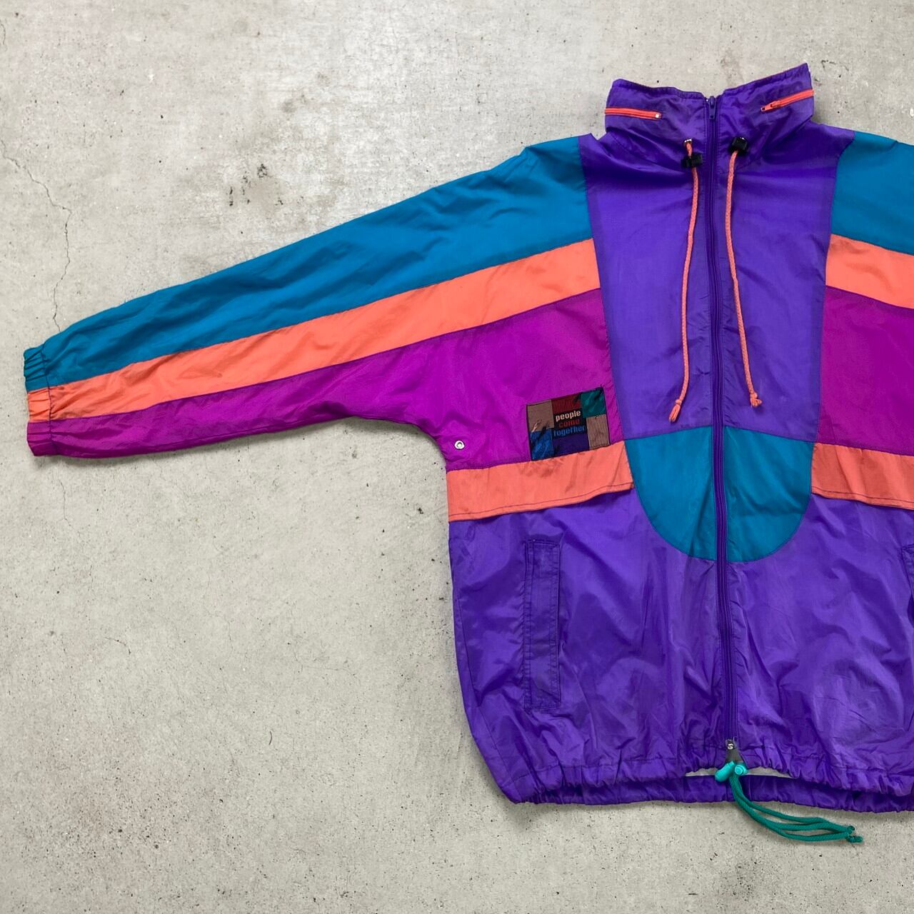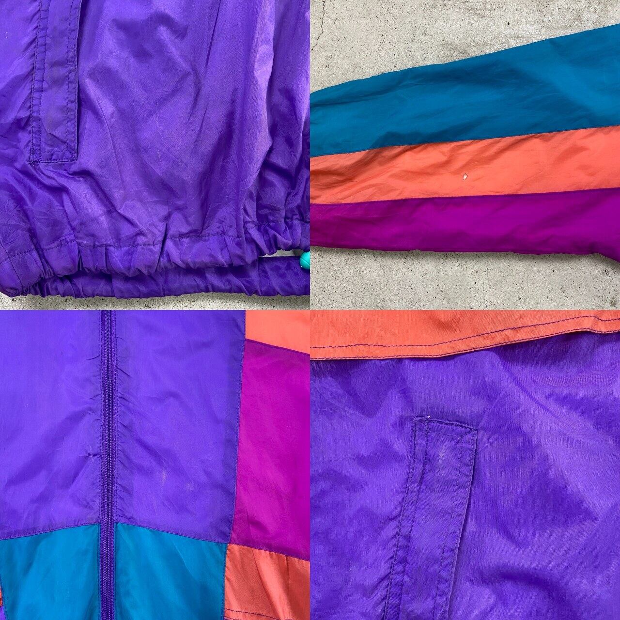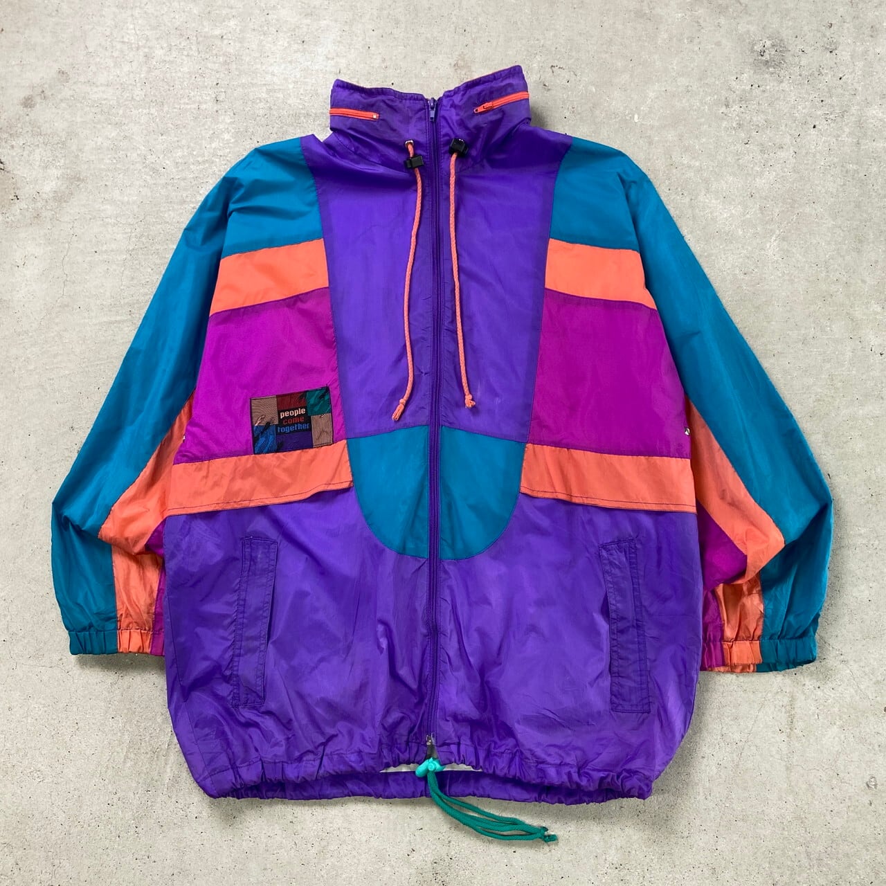 ■80~90年代 SHAMP ユーロ ナイロンジャケット 切り替えデザイン メンズL相当 古着 80s 90s ヴィンテージ VINTAGE フード収納型 ハイネック ドローコード パープル オレンジ アクアブルー【ナイロンジャケット】/マルチカラー
