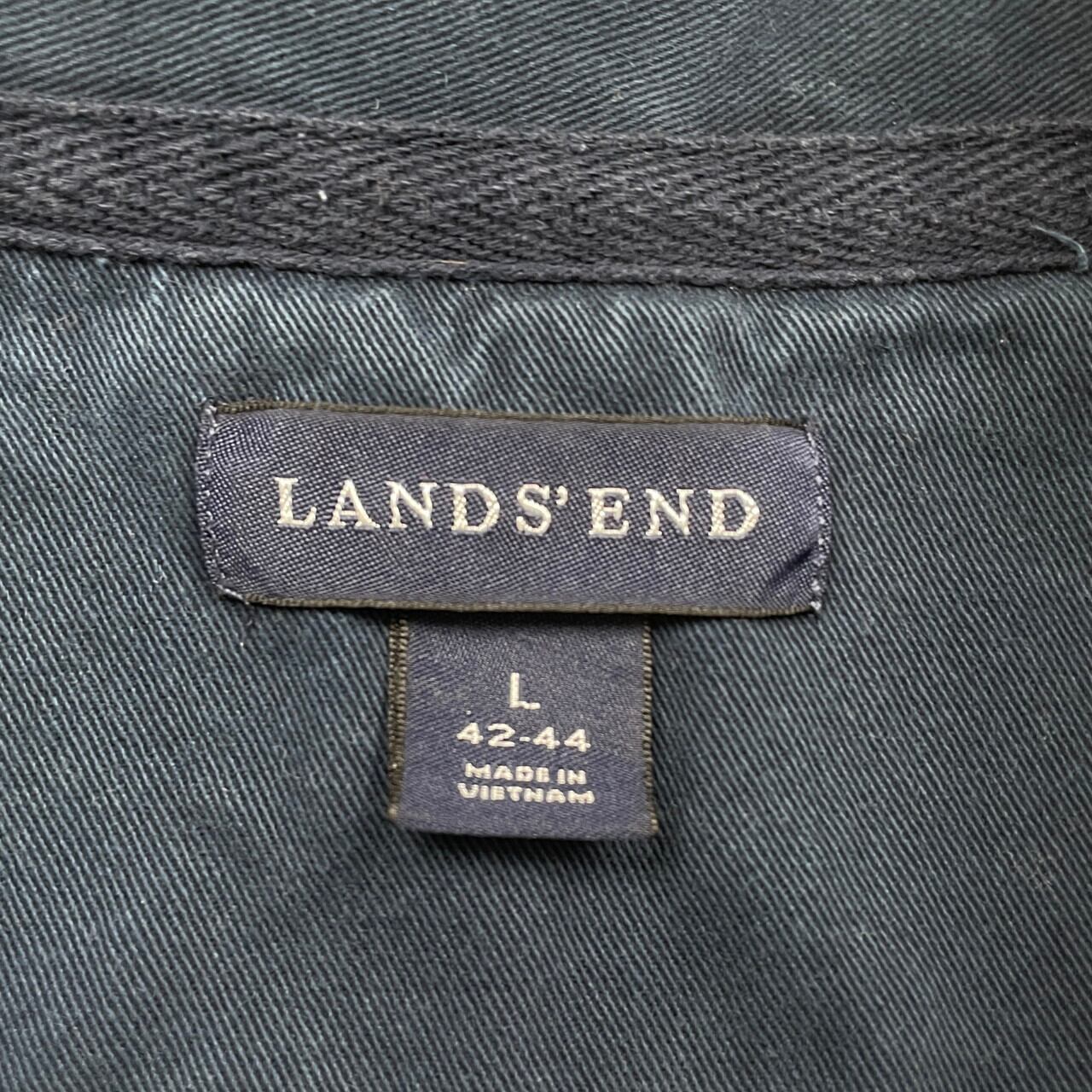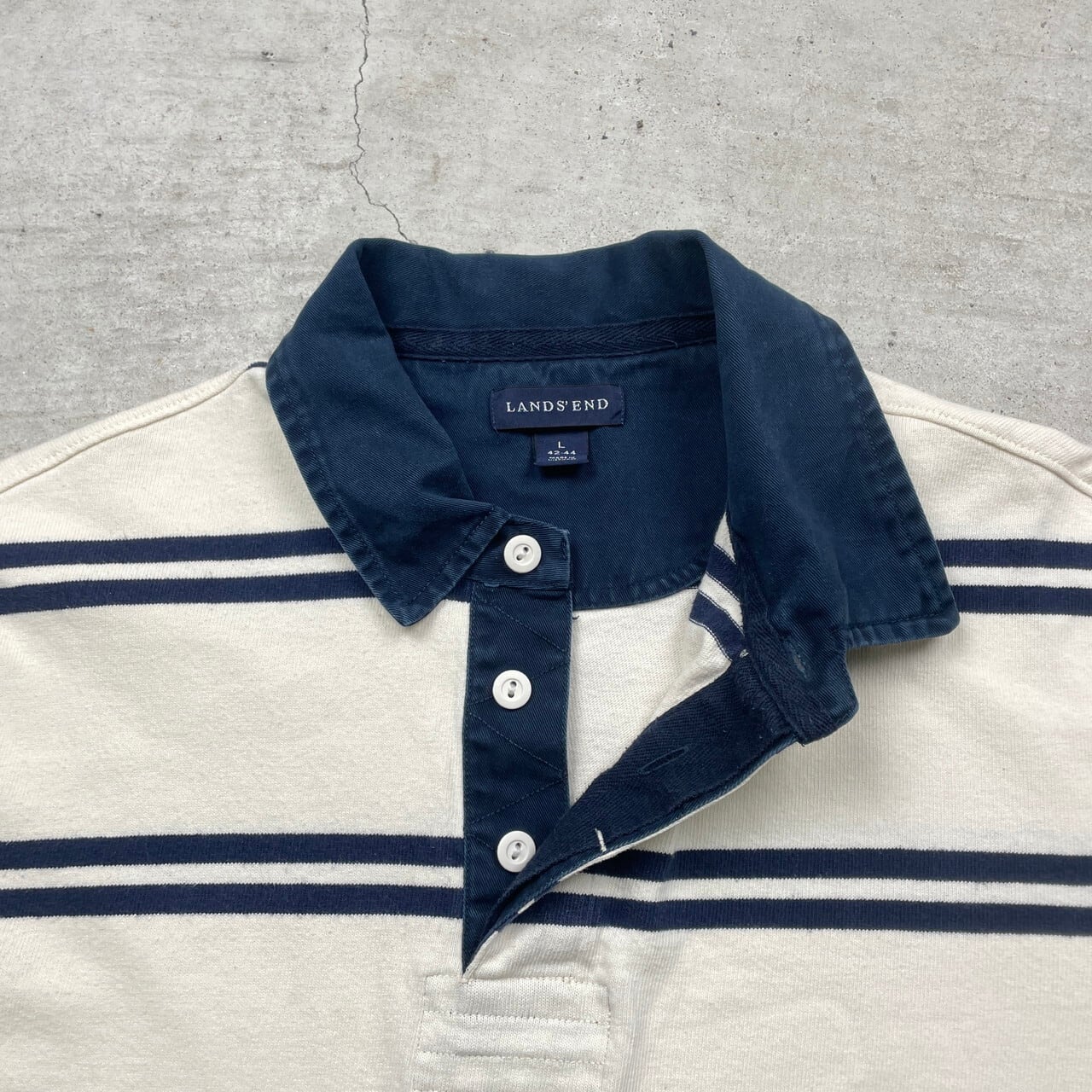 LANDS' END ランズエンド ボーダー ラガーシャツ メンズXL相当 古着 アメカジ エルボーパッチ VINTAGE ヴィンテージ 紺 白 ネイビー【ポロシャツ・ラガーシャツ】/ホワイト【SS20】【SS50】
