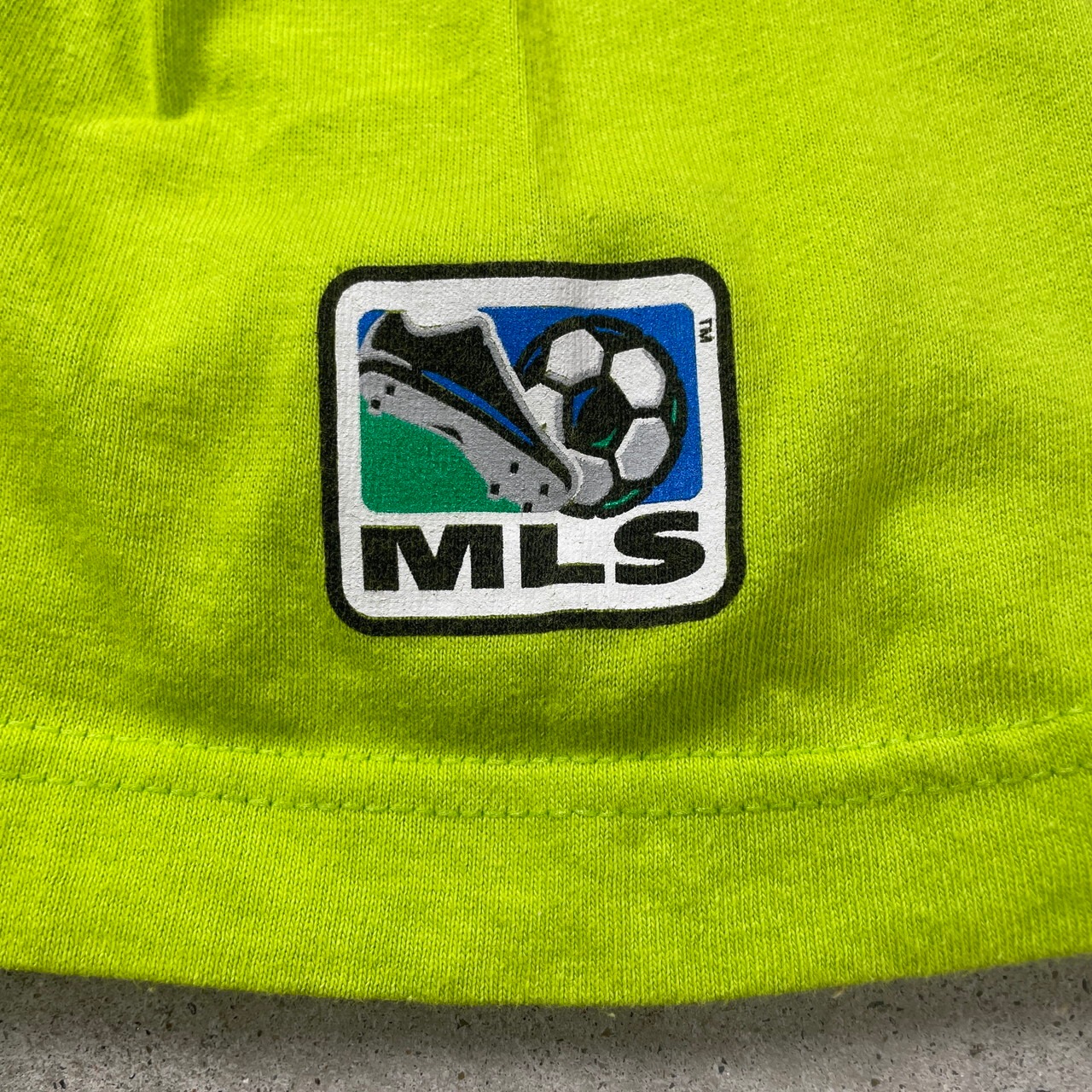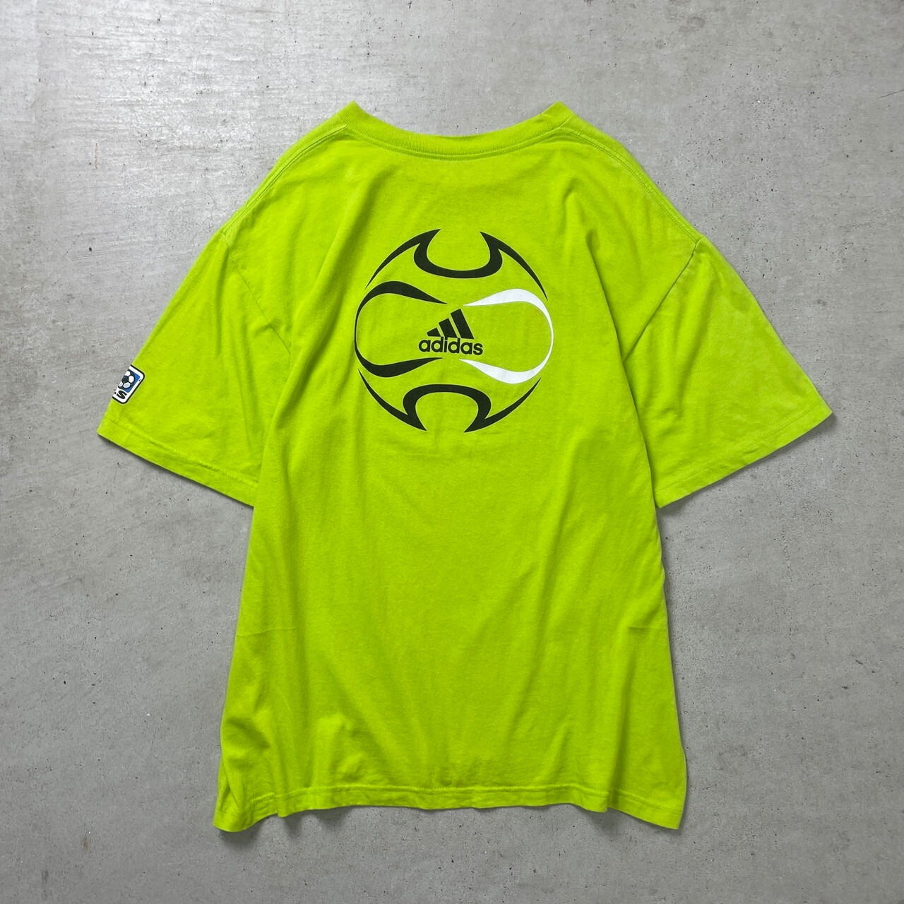 adidas アディダス プリントTシャツ MLS メンズL 古着 サッカー BALL KID 黄緑色【Tシャツ】/グリーン【SS2408-50a】