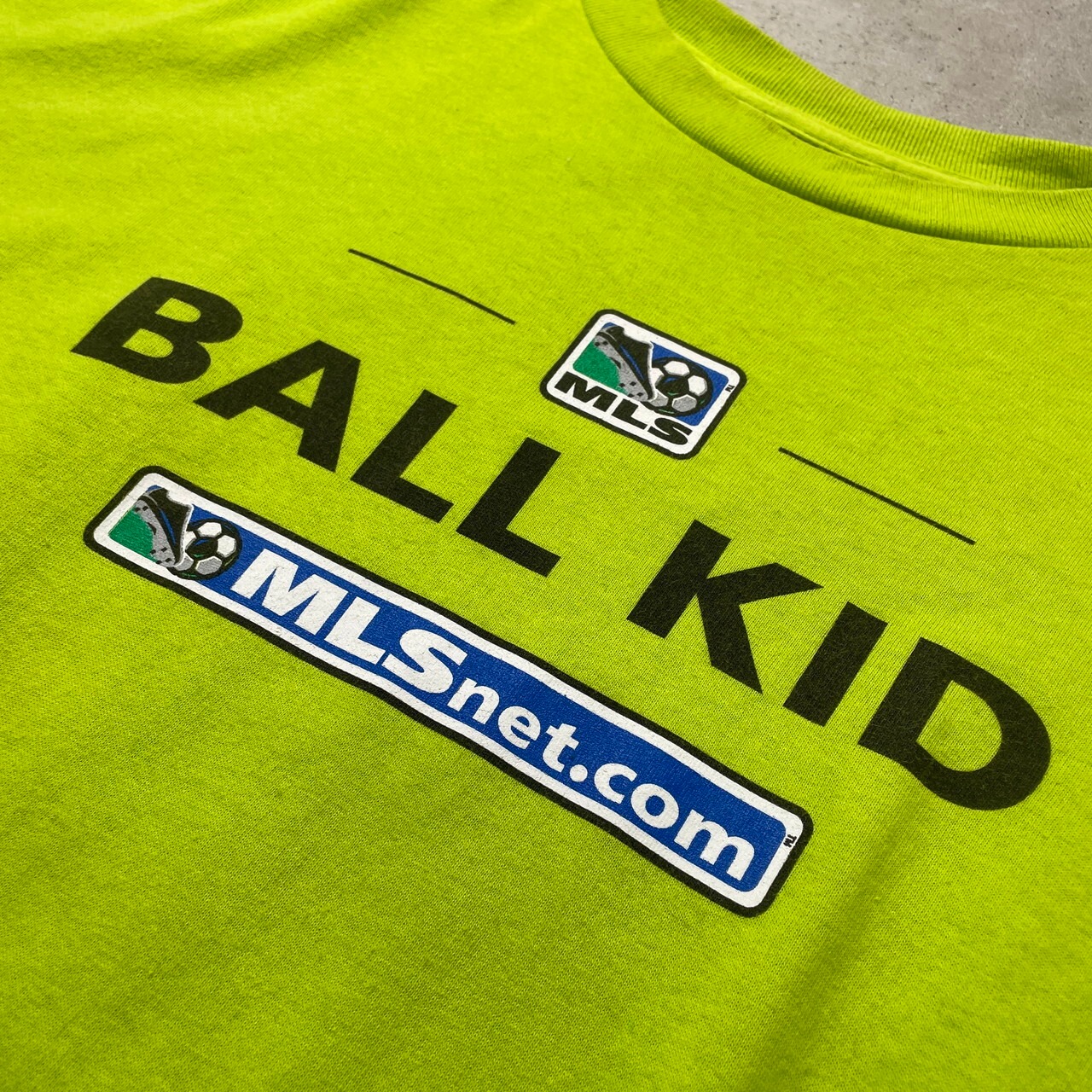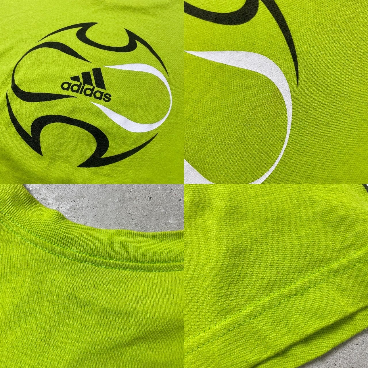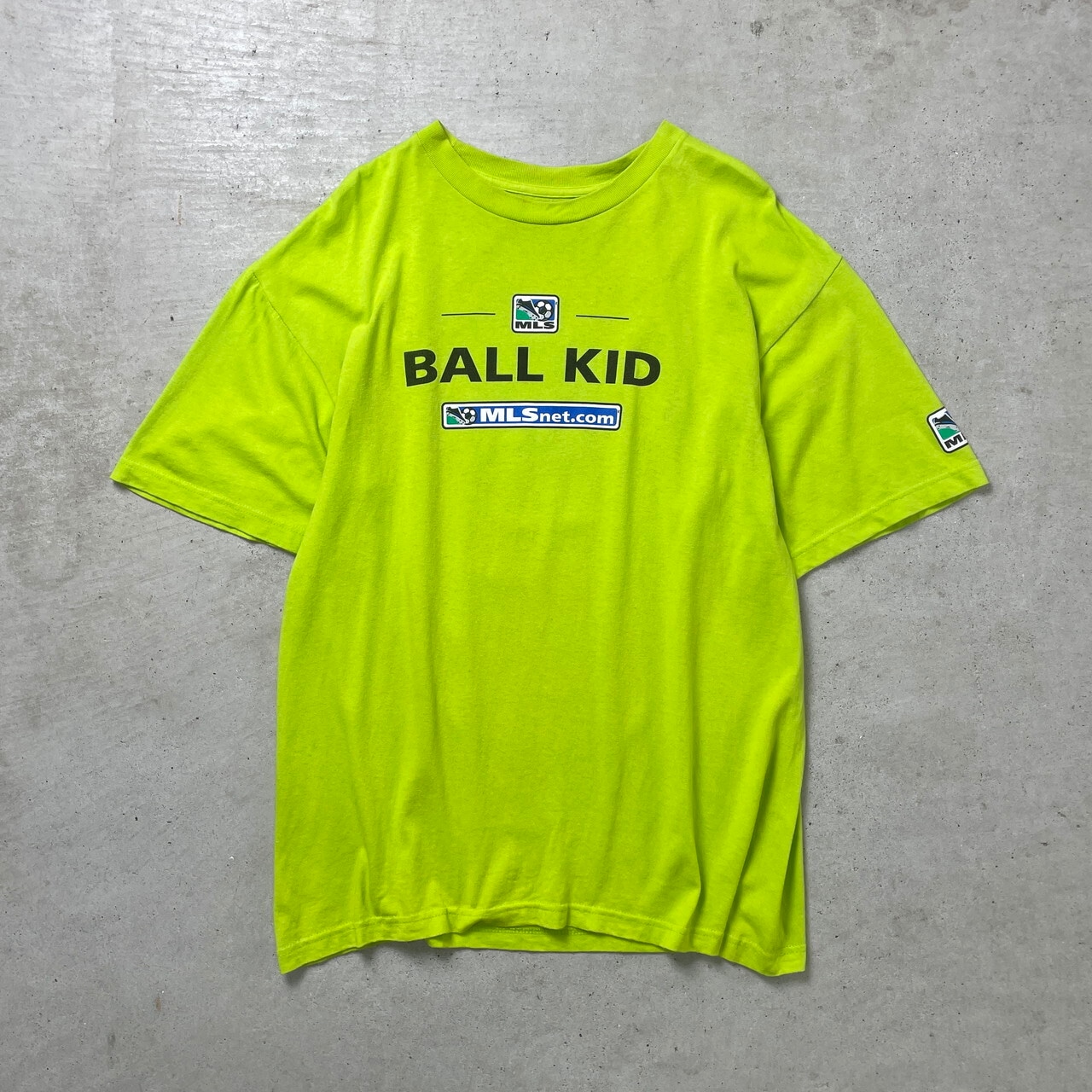 ■adidas アディダス プリントTシャツ MLS メンズL 古着 サッカー BALL KID 黄緑色【Tシャツ】/グリーン