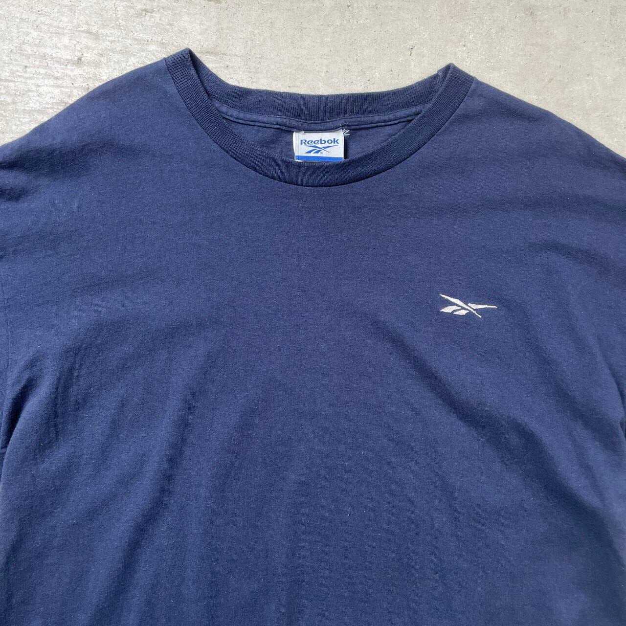 ■Reebok リーボック ワンポイントロゴ 刺繍 Tシャツ メンズ2XL相当 古着 ヴィンテージ VINTAGE 紺色【Tシャツ】/ネイビー