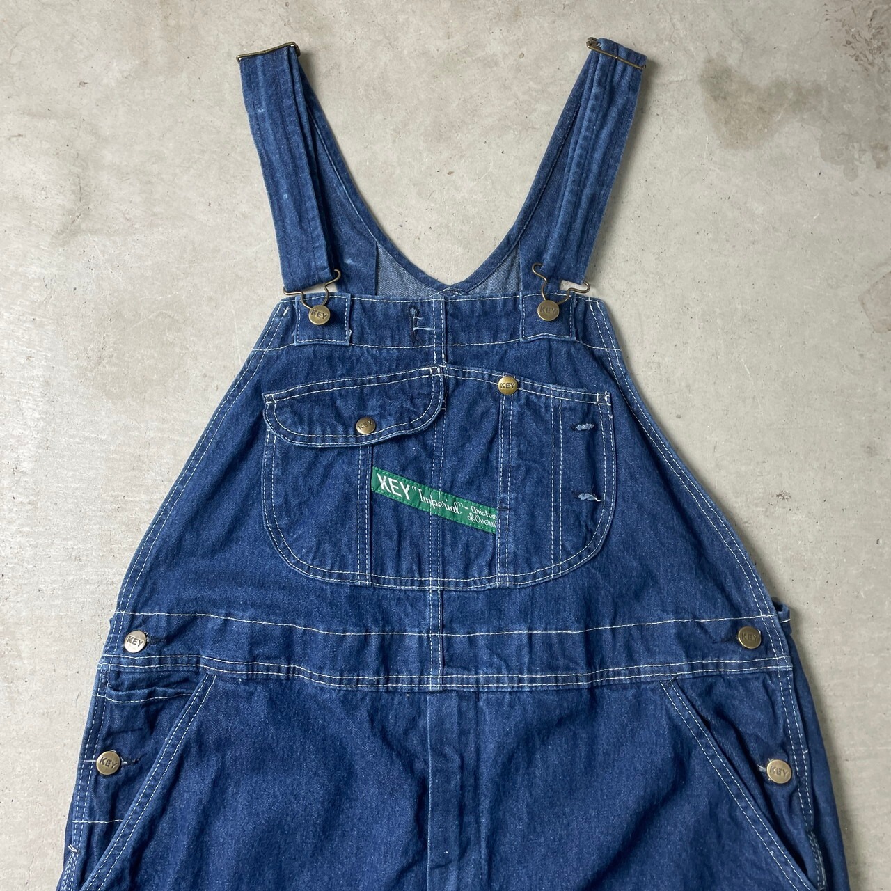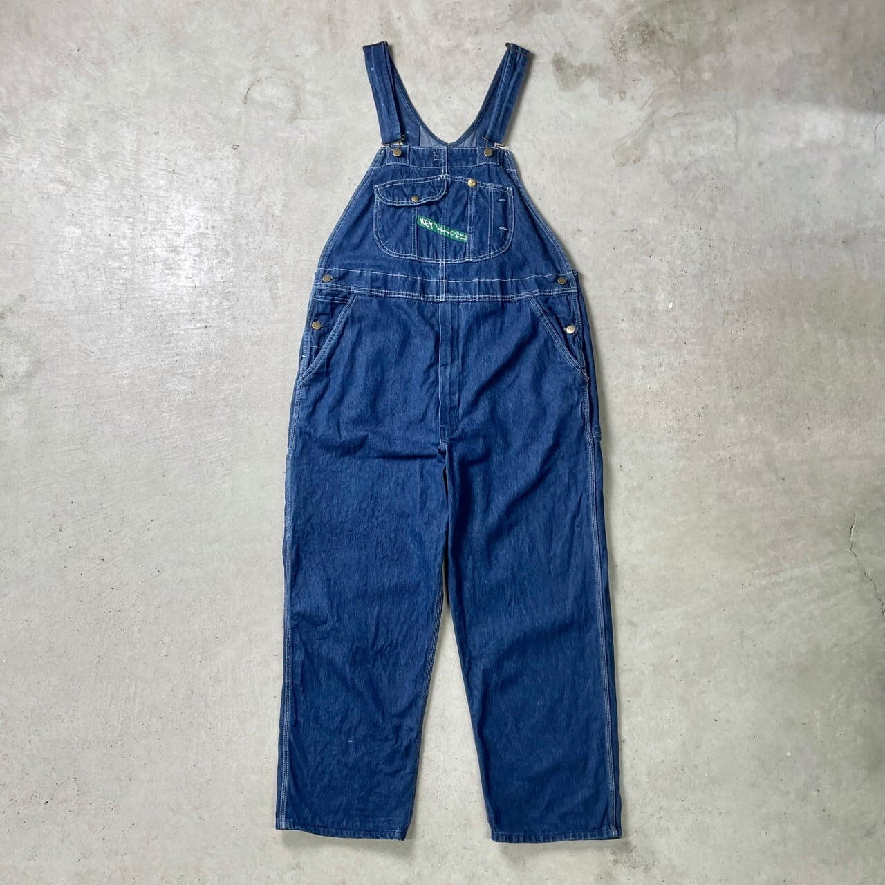 ■ KEY キー デニム オーバーオール ペインターパンツ メンズW42 古着 大きいサイズ ビッグサイズ 青色 緑色 グリーン【オーバーオール】/ブルー