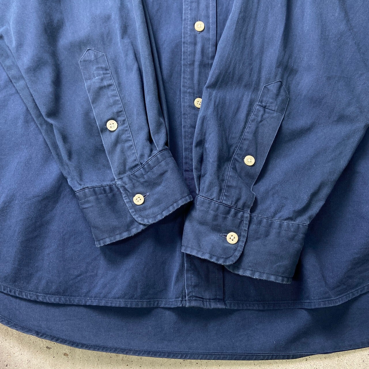 ■Ralph Lauren ラルフローレン コットンツイルシャツ BLAIRE ボタンダウン メンズXL 古着 アメカジ ヴィンテージ VINTAGE 紺色【長袖シャツ】/ネイビー