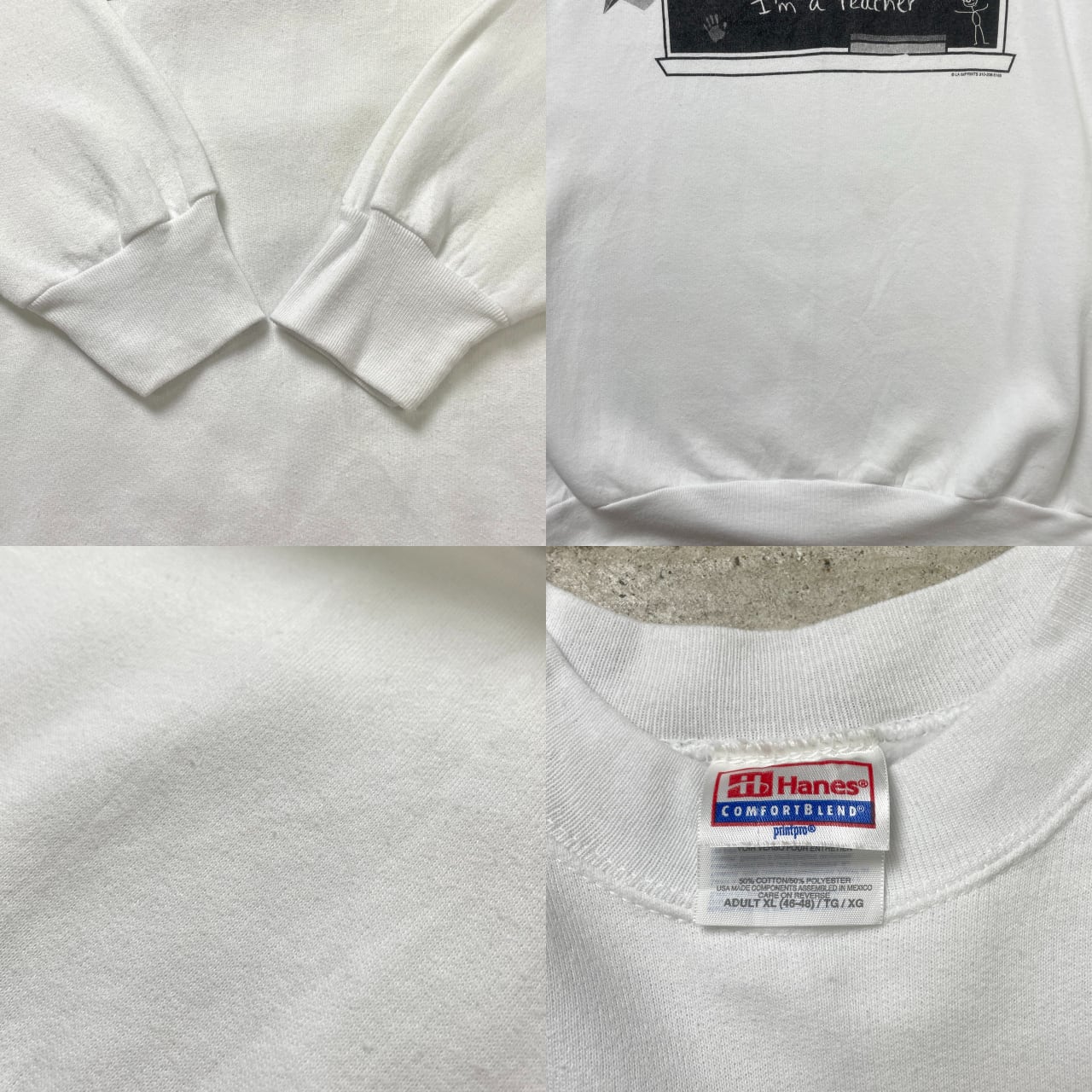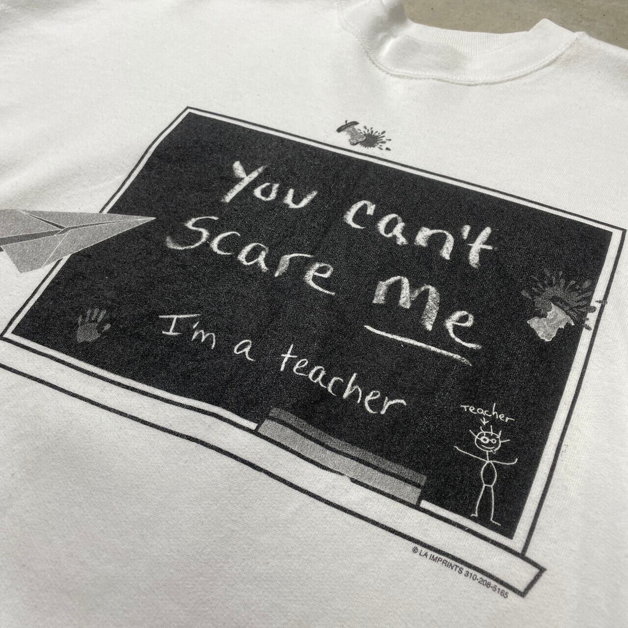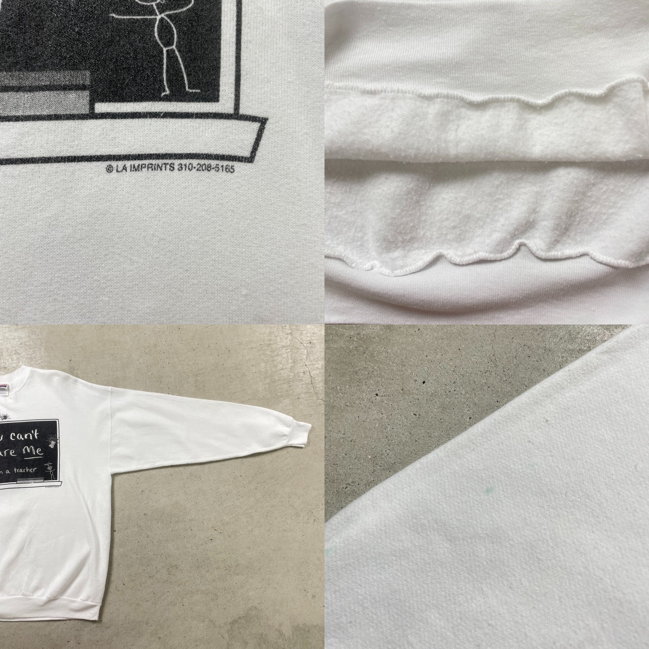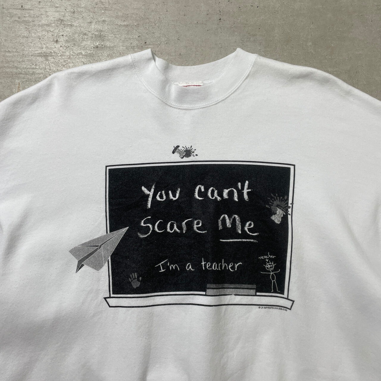 90年代 you can't scare me I'm a teacher メッセージプリントスウェットシャツ メンズXL 古着 90s ヴィンテージ VINTAGE トレーナー 白 黒色 ブラック【スウェット】/ホワイト【WS2501-50】【SS50-AW】