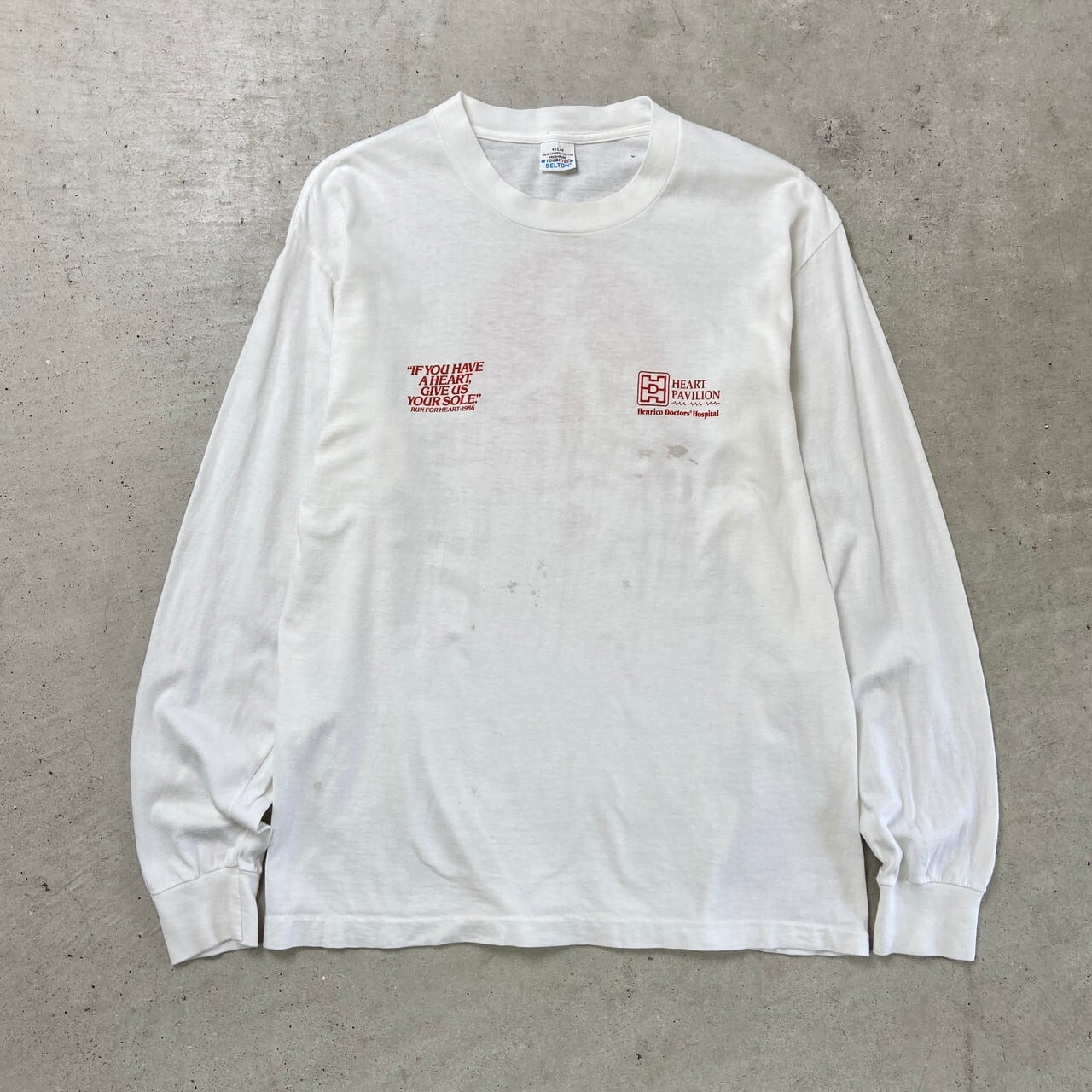 80年代 USA製 RUN FOR HEART プリント ロングTシャツ メンズM相当 古着 80s 1986 ヴィンテージ VINTAGE バックプリント 胸ロゴ イベント 企業ロゴ ロンT シングルステッチ 白【ロングTシャツ】/ホワイト【SA2501-50】【SS50-AW】