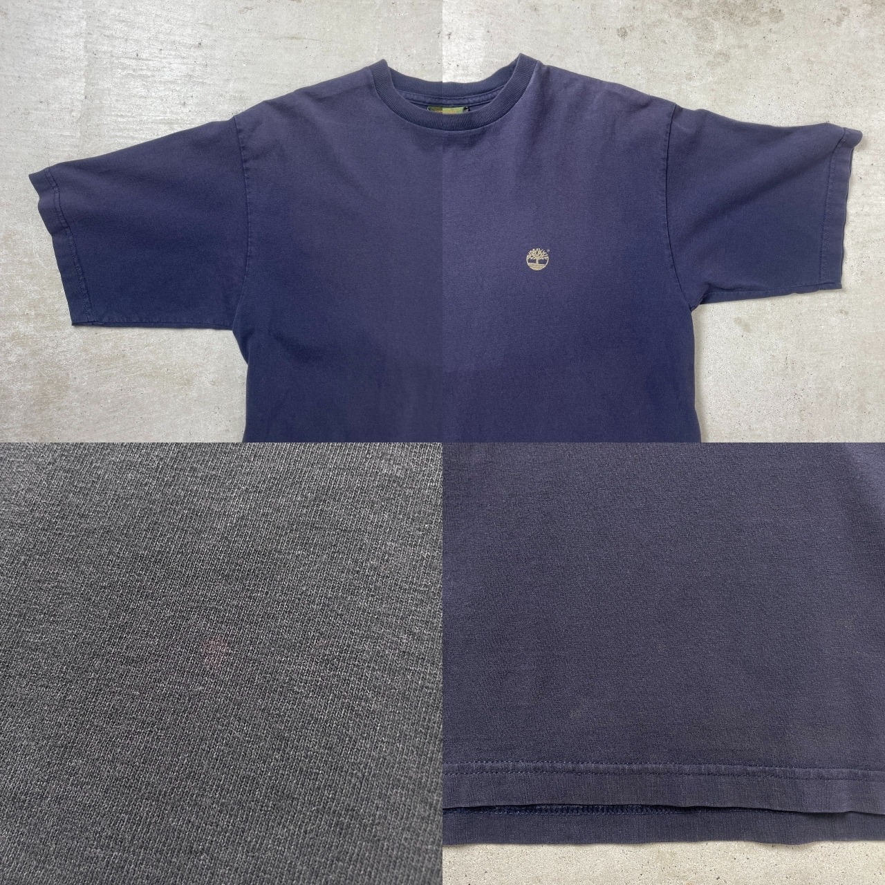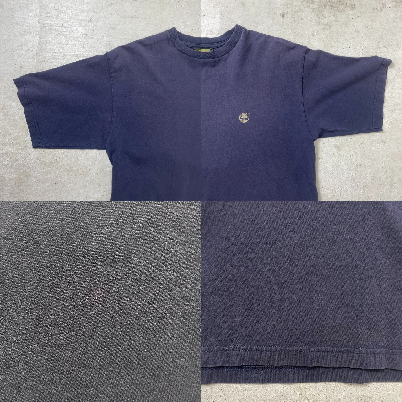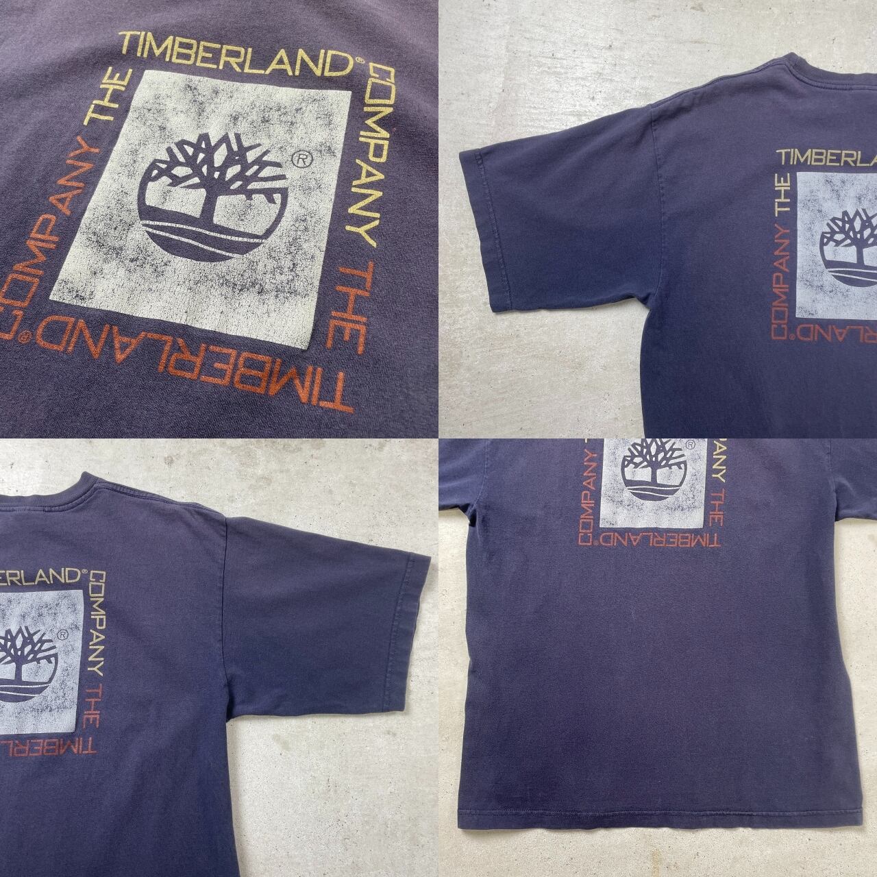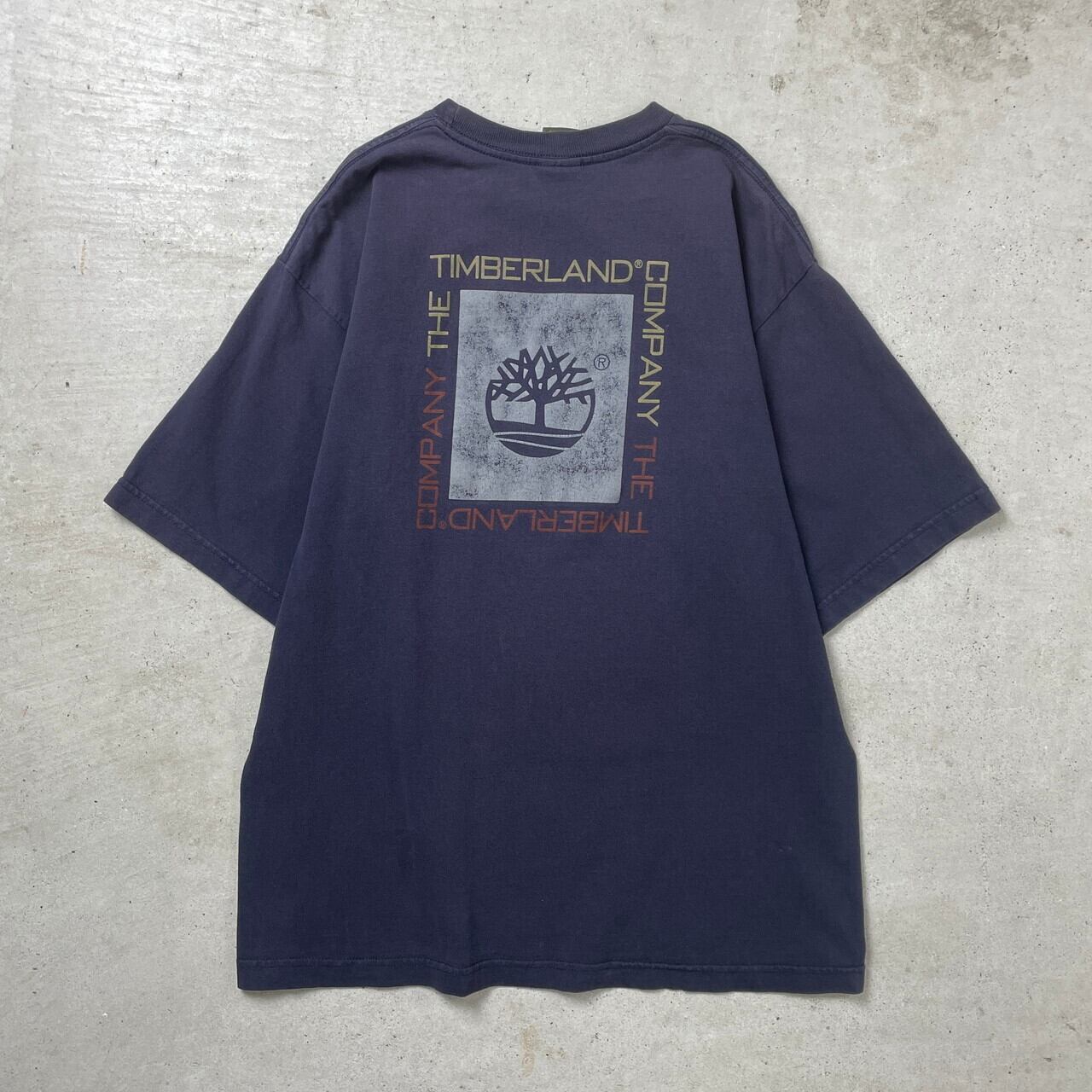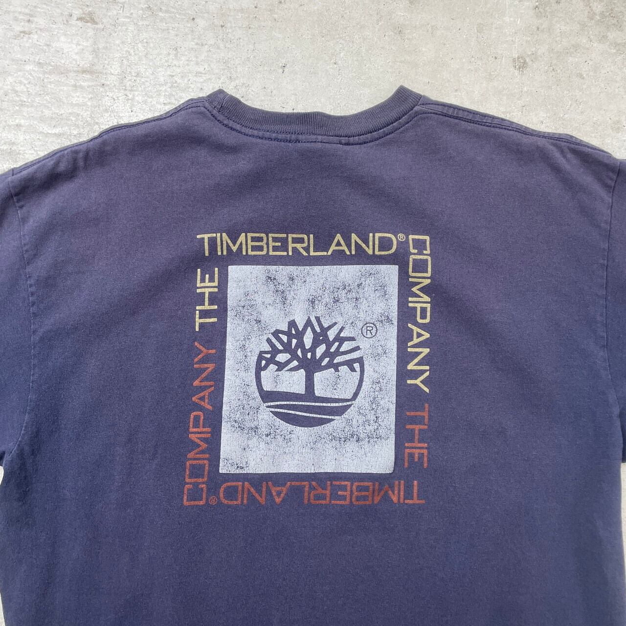 90年代 Timberland ティンバーランド ロゴプリント Tシャツ メンズM 古着 90s 両面プリント ヴィンテージ VINTAGE 紺色 ナス紺 フェードネイビー【Tシャツ】/ネイビー【SS2408-40】