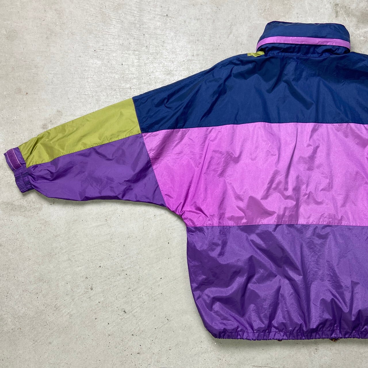 ■JEANTEX ナイロンアノラックジャケット レインパーカー フード収納型 パッカブル仕様 切り替えデザイン メンL相当 古着 ユーロ ドローコード ヴィンテージ VINTAGE パープル オリーブ ネイビー マスタード【ナイロンジャケット】/マルチカラー