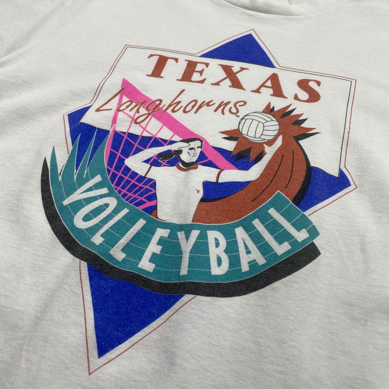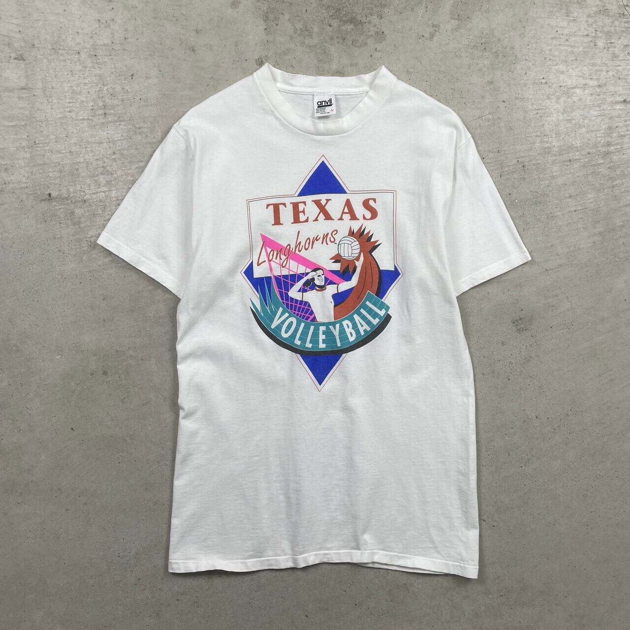 ■90年代 USA製 TEXAS Lomghorns Volley Ball シングルステッチ メンズL 古着 90s スポーツ バレーボール 白色【Tシャツ】/ホワイト