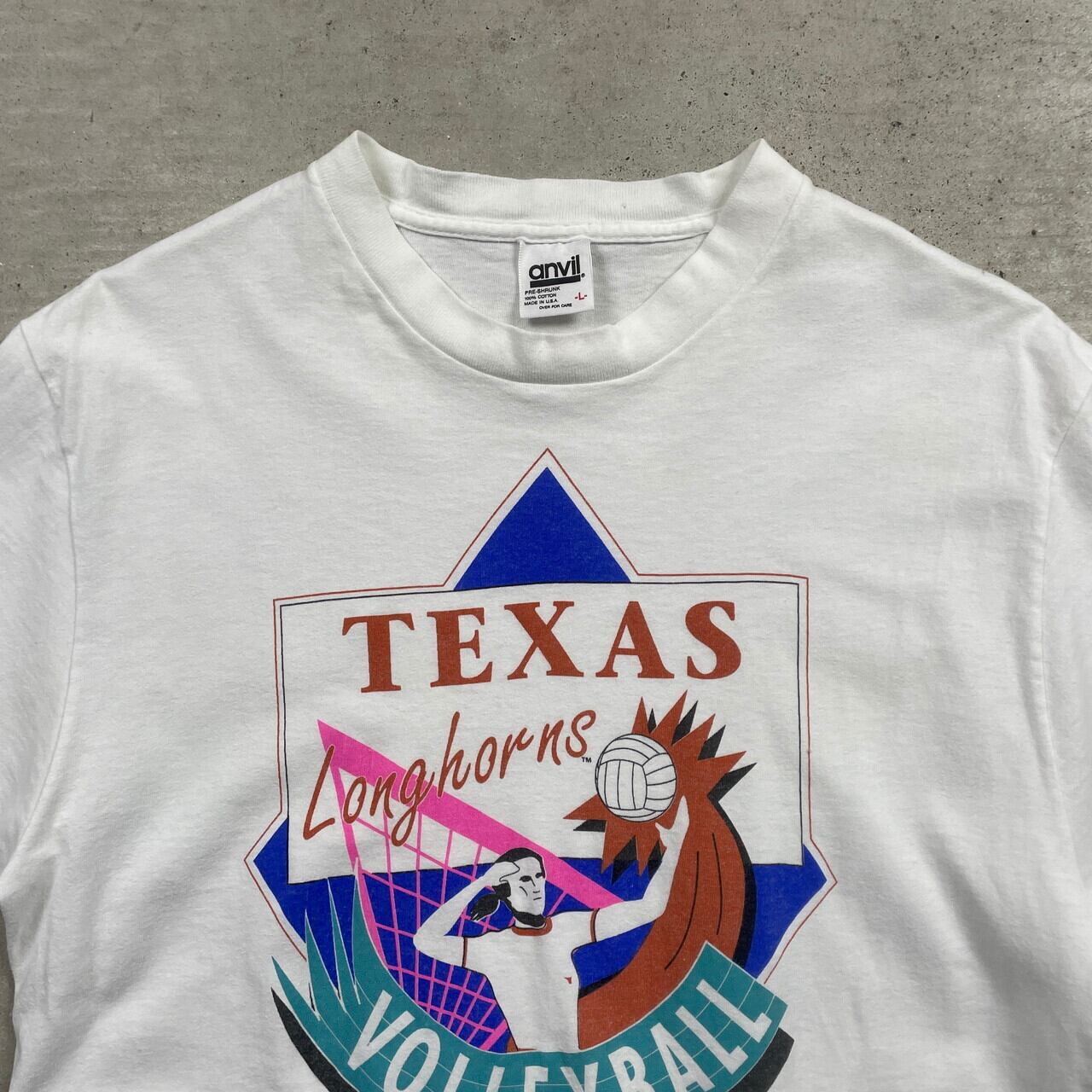 90年代 USA製 TEXAS Lomghorns Volley Ball シングルステッチ メンズL 古着 90s スポーツ バレーボール 白色【Tシャツ】/ホワイト【SA2501-30】【WS2501-30】