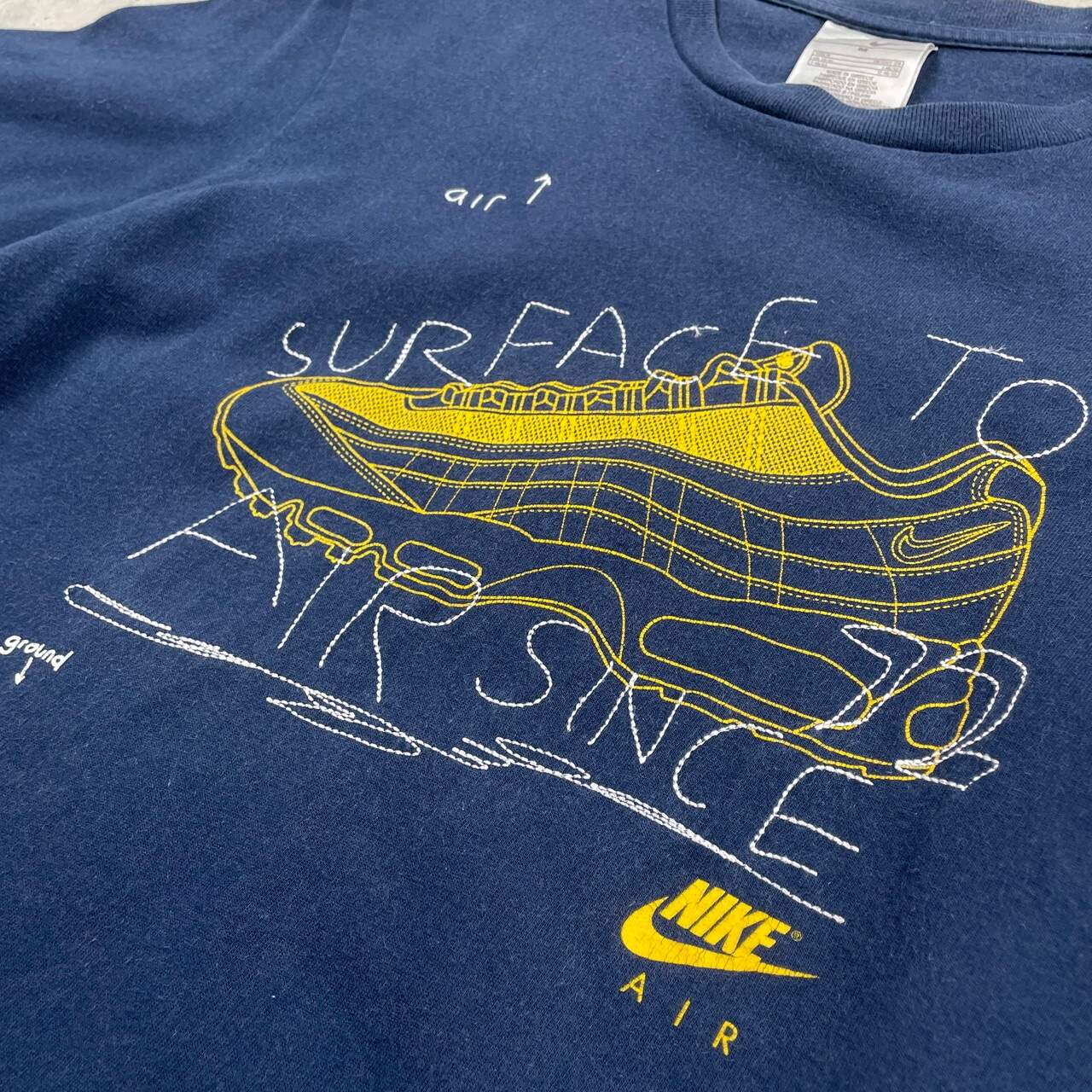 ■NIKE ナイキ AIR プリントTシャツ デザイン刺繍 メンズM相当 古着 ナイキエアー 紺色【Tシャツ】/ネイビー