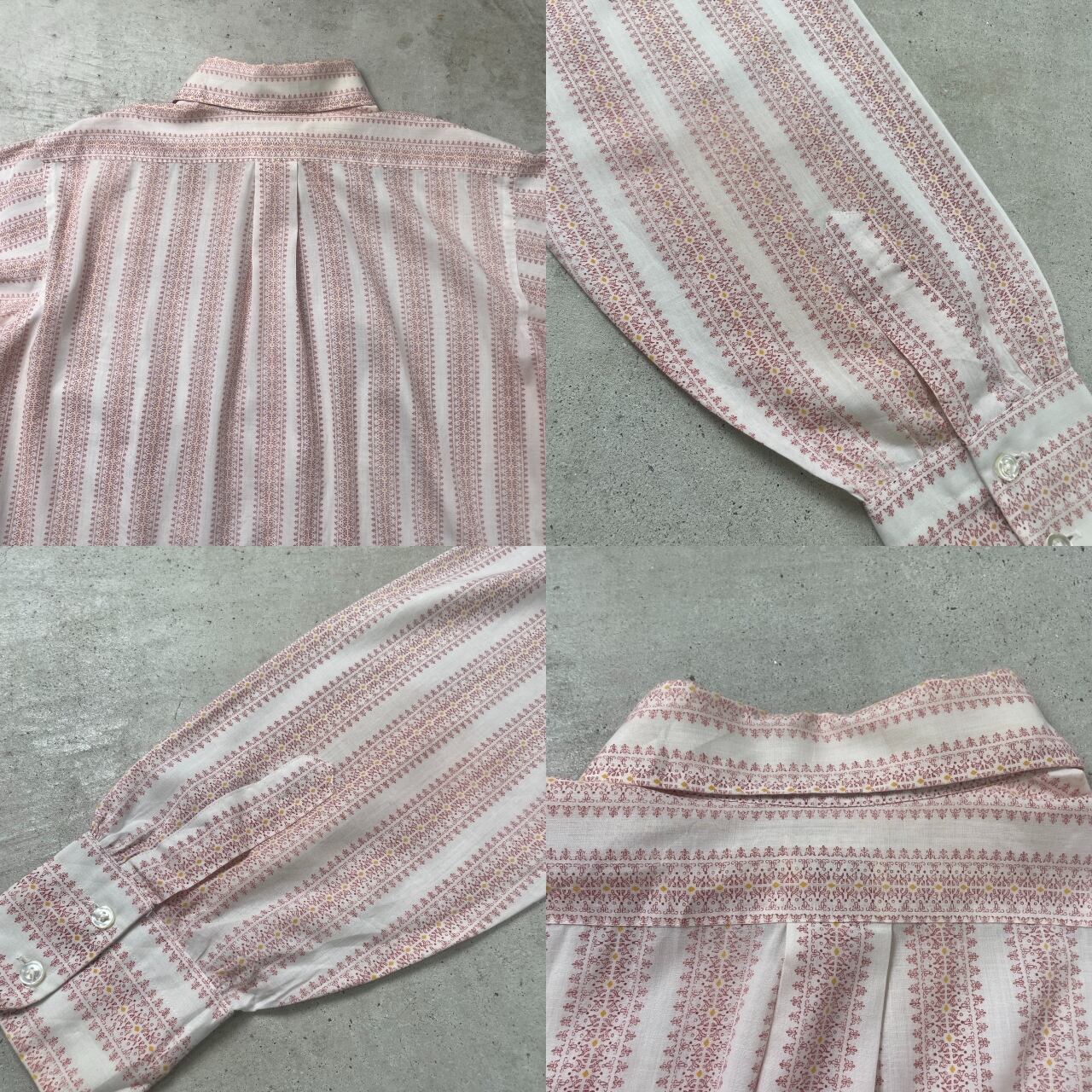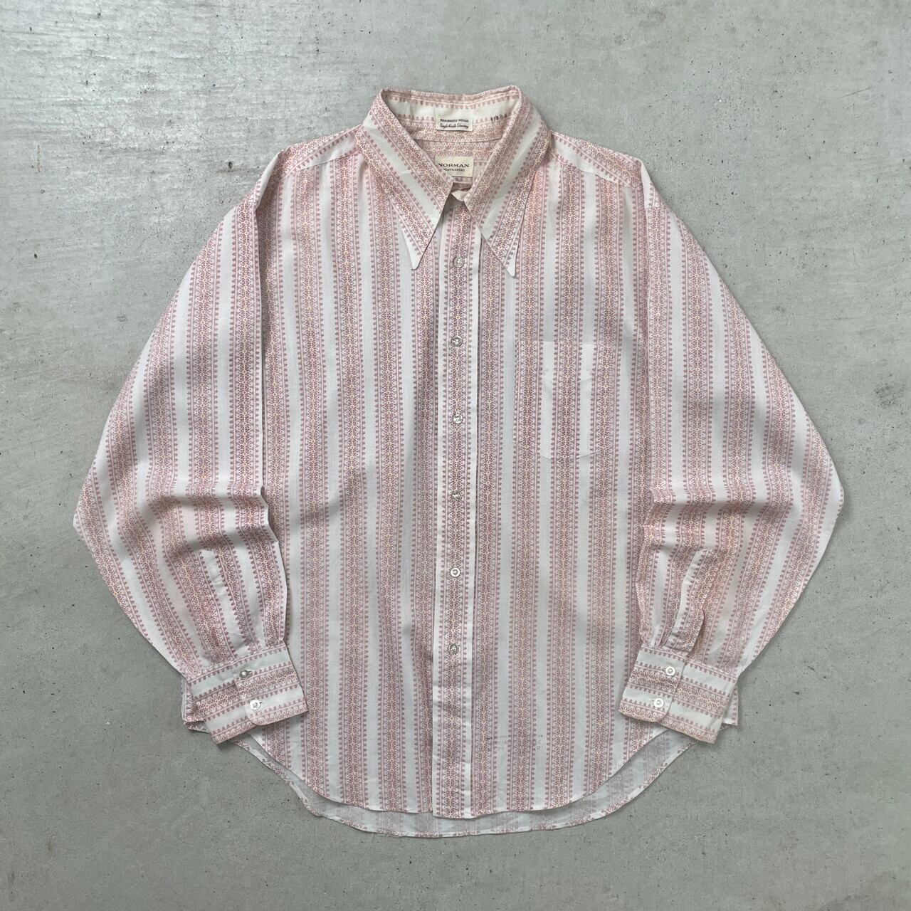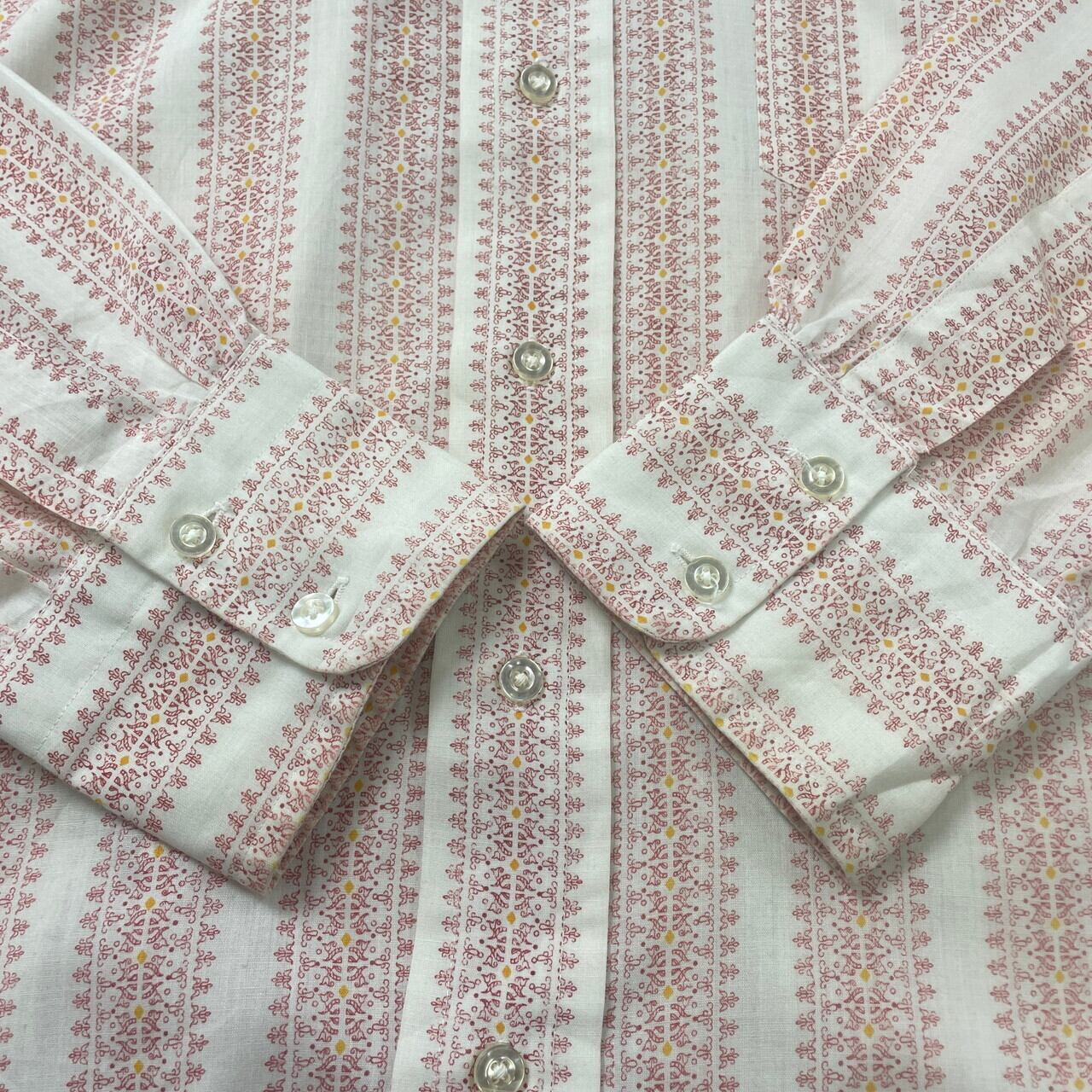 70年代 NORMAN SHRTMAKERS 総柄 長袖シャツ メンズXL相当 古着 ヴィンテージ VINTAGE 70s 白 レッド 赤 イエロー 黄色【長袖シャツ】/ホワイト【SA2501-30】【WS2501-50】