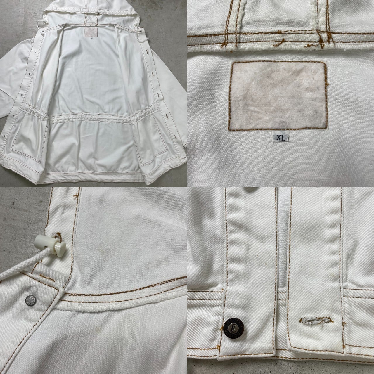 ■SO LONG コットンパーカー フーデッド ジャケット コート 古着 メンズXL ホワイト 白 レディース【ジャケット・ブルゾン】