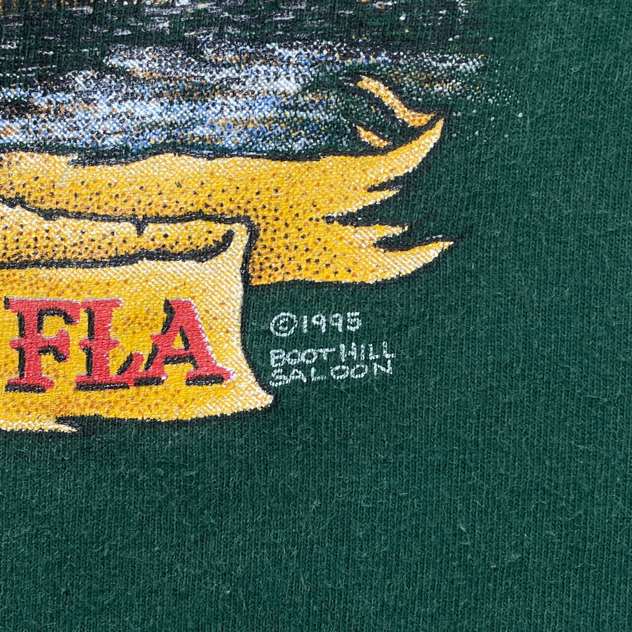 90年代 USA製 BOOT HILL SALOON デイトナビーチ デザインプリント ポケットTシャツ ポケT メンズXL 古着 90s サンダー柄 バイク シングルステッチ 緑 ディープグリーン【Tシャツ】/グリーン【SA2501-30】