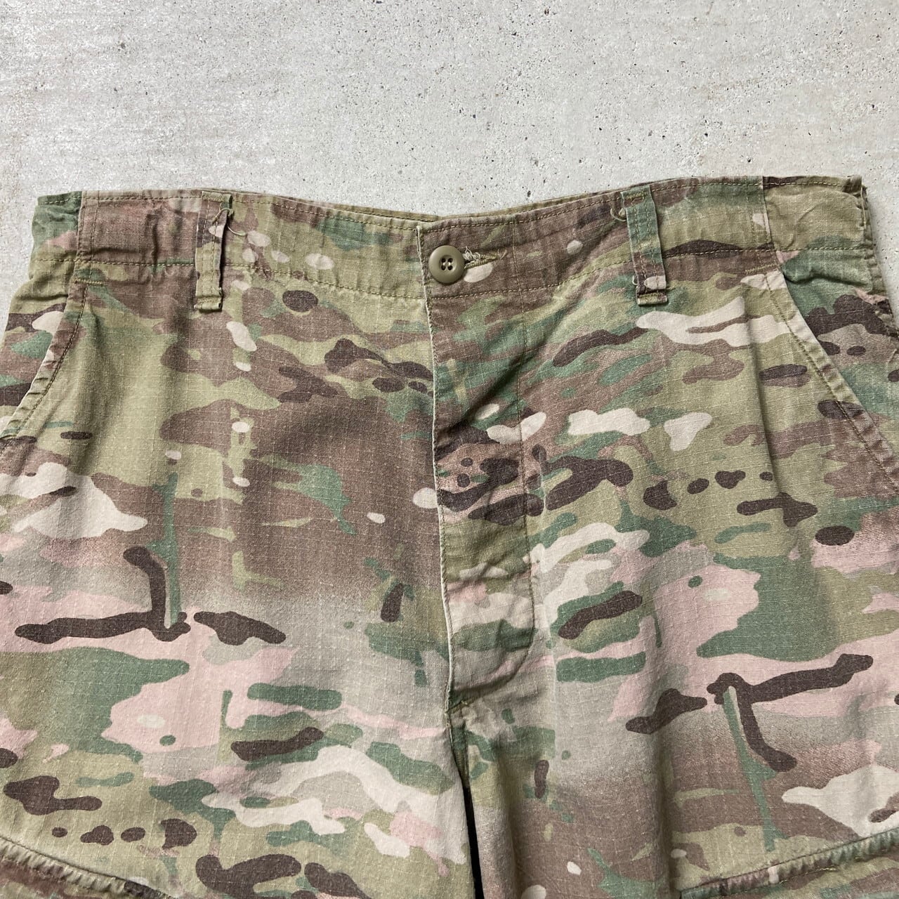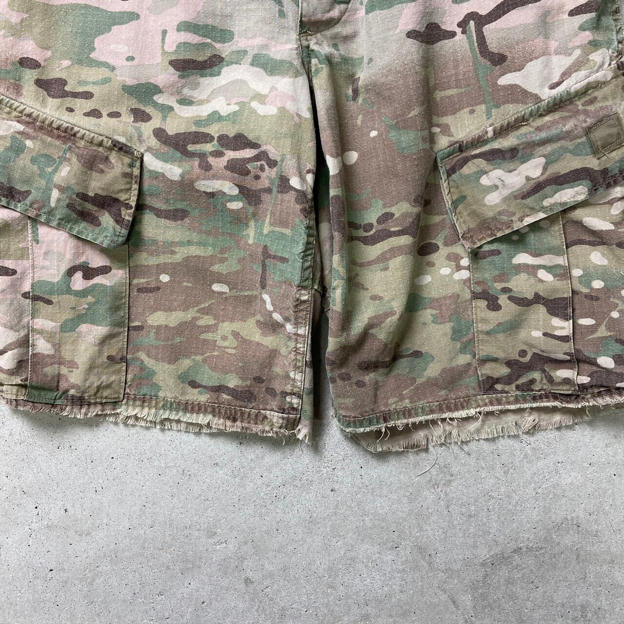 ■2010年納品 米軍 コンバットカーゴショートパンツ メンズW34相当 古着 迷彩 裾カットオフ フェードカーキグリーン【ショートパンツ】/マルチカラー
