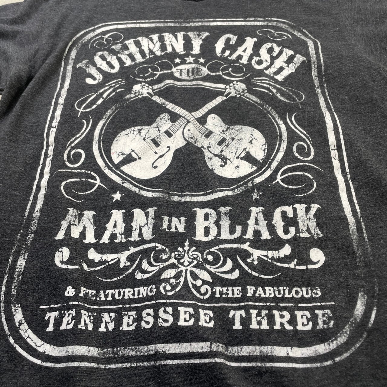 ■Johnny Cash MAN IN BLACK アーティストTシャツ バンドTシャツ メンズS相当 古着 ジョニー・キャッシュ 黒色【Tシャツ】/ブラック