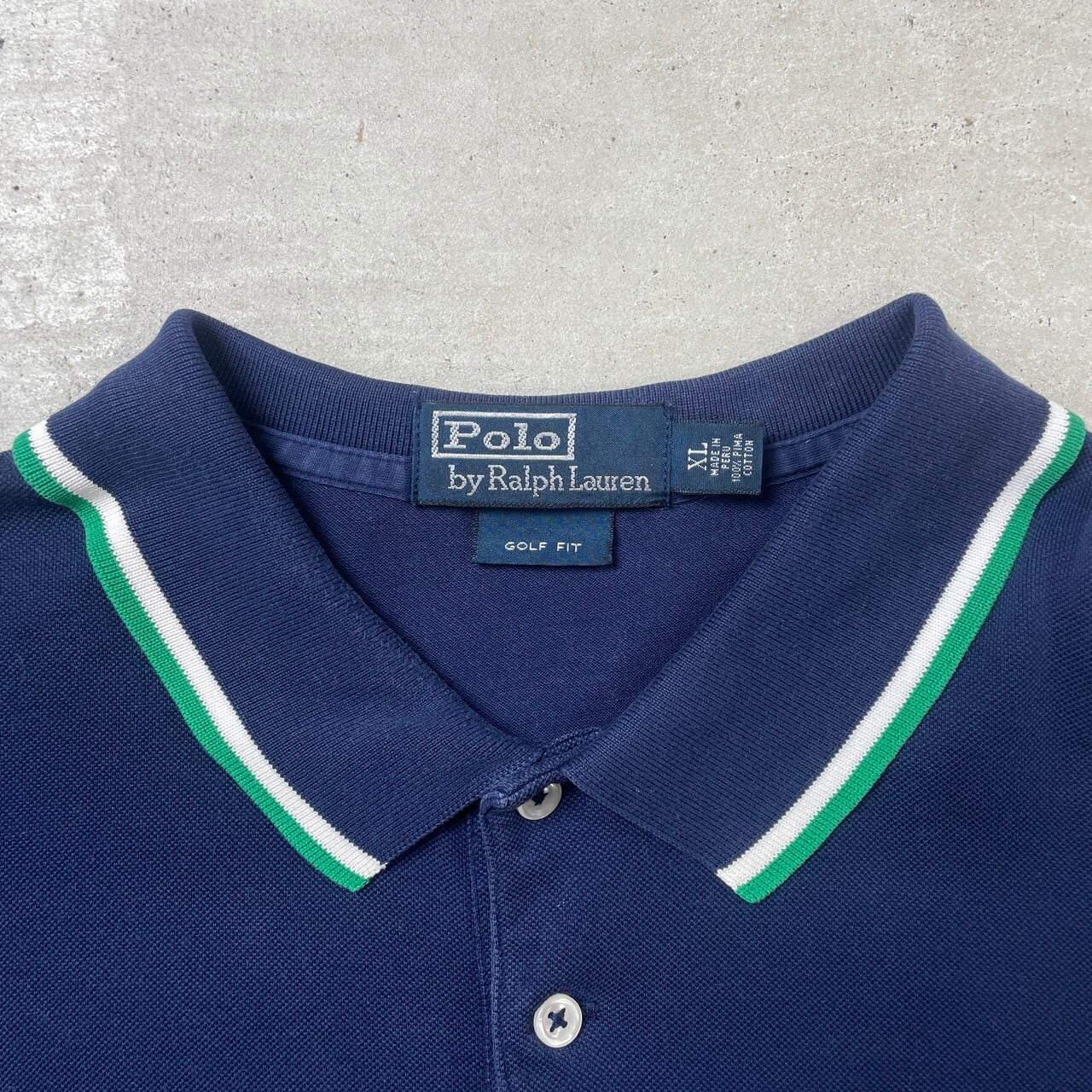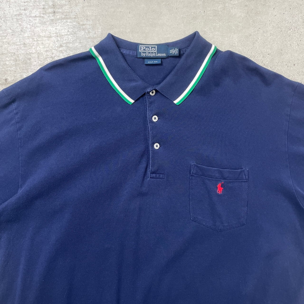 ■Polo by Ralph Lauren ポロバイラルフローレン GOLF FIT 半袖 ポロシャツ メンズXL 古着 オールドラルフローレン VINTAGE ヴィンテージ 紺 ホワイト 白 グリーン 緑【ポロシャツ・ラガーシャツ】/ネイビー